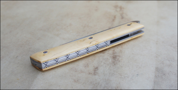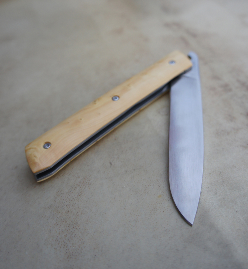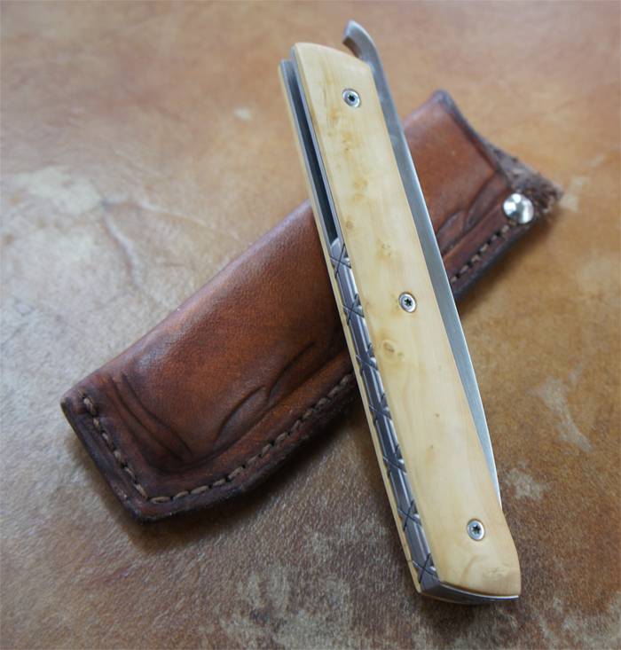 Reka Niolox et buis Post author:cyrilka Post published:9 novembre 2014 Post category:Couteaux pliants / Reka Post comments:1 commentaire Couteau de type liner lock. Lame Niolox – plaquettes buis – platines titane – guillochage. Longueur de lame : 9,7 cm. Longueur totale : 21,2 cm. Tags: artisanale, buis, couteau, couteau pliant, coutellerie, cyril, cyril kalisz, demontable, guillochage, inox, inoxydable, kalisz, Liner lock, niolox, pliant, ReKa, titane Read more articles Article précédentTreyssac Art Deco WW Article suivantCouteau forgé – étui cuir Vous devriez également aimer Reka -M- XC75 trempe sélective – loupe de noyer stabilisée 8 mai 2015 Nuevo RWL34 & châtaigner ondé 19 février 2022 Icitte Wootz et Buffle noir 2 juillet 2019 La publication a un commentaire delestre 27 Nov 2014 Répondre piemontais au ligne tres moderne bravo tu le vend ? Laisser un commentaire Annuler la réponseCommentEnter your name or username to comment Enter your email address to comment Enter your website URL (optional) Enregistrer mon nom, mon e-mail et mon site dans le navigateur pour mon prochain commentaire. Je m'inscrit à la liste d'informations Δ Ce site utilise Akismet pour réduire les indésirables. En savoir plus sur comment les données de vos commentaires sont utilisées.