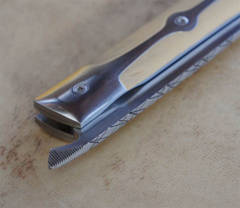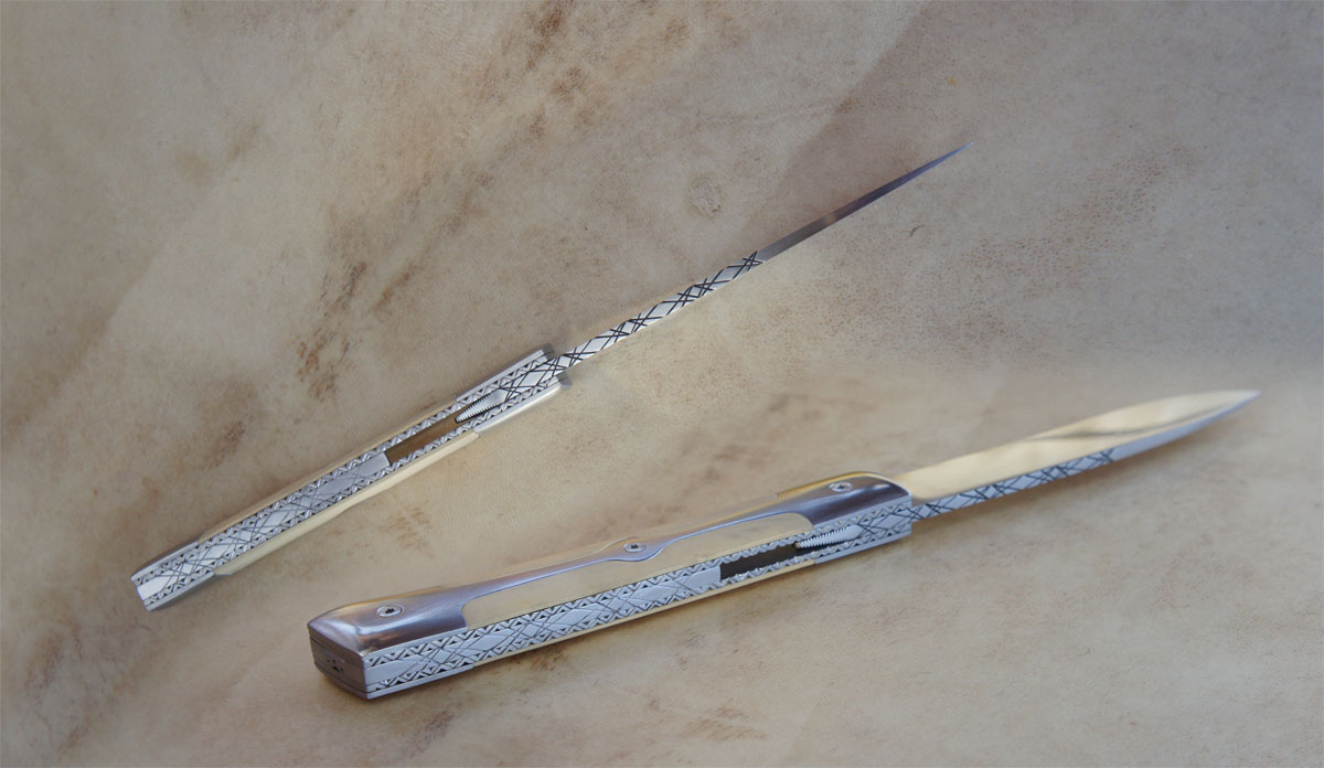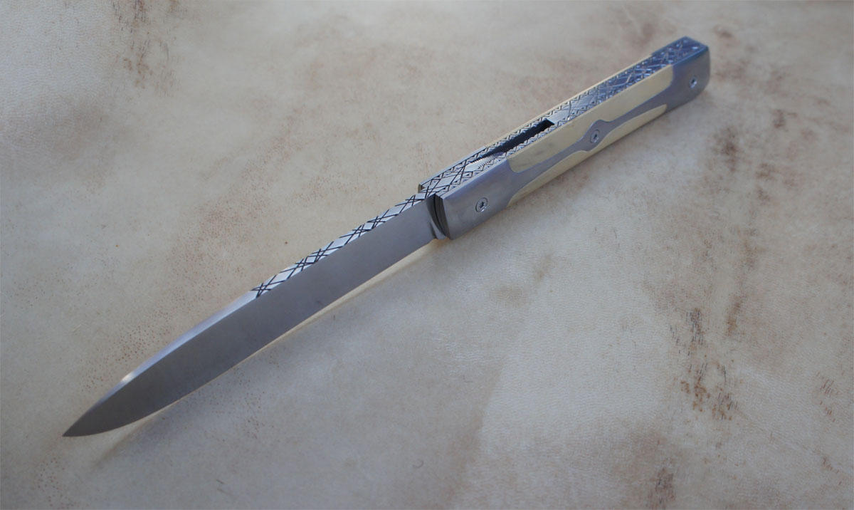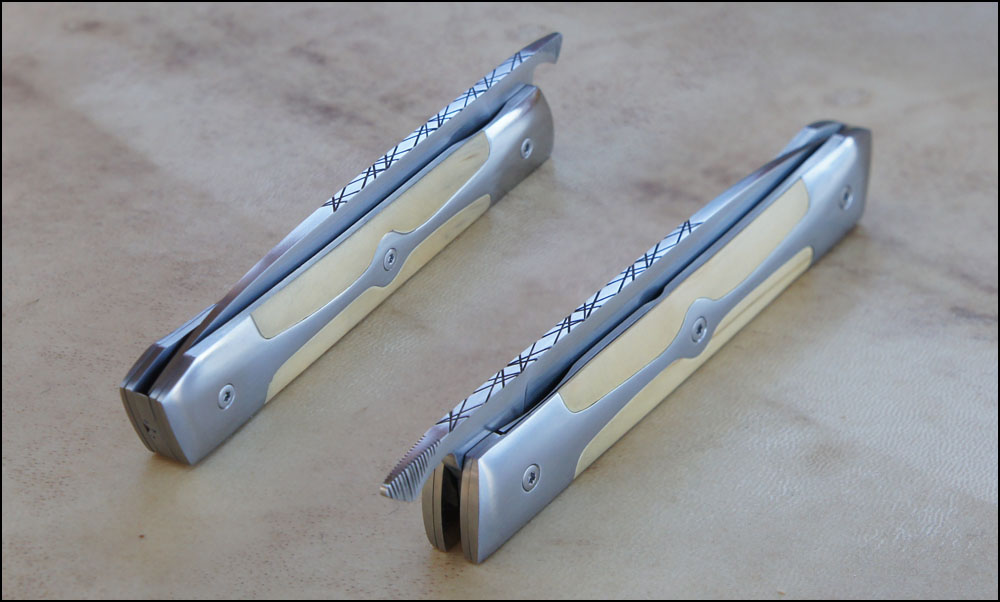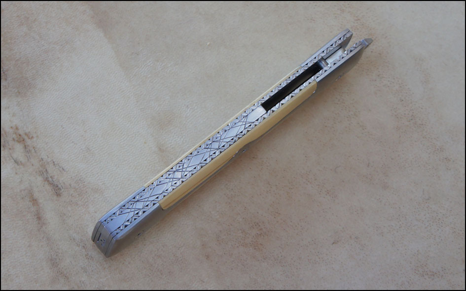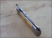 Reka RWL34 – Buis – doubles mitres « mono-bloc » titane Post author:cyrilka Post published:10 avril 2015 Post category:Couteaux / Couteaux pliants / Reka Post comments:1 commentaire Couteau de type liner lock. Lame RWL34 – plaquettes Buis – platines titane – doubles mitres mono-bloc titane – guillochage. Longueur de lame : 9,8 cm. Longueur totale : 21,2 cm. Tags: acier des poudres, artisanale, buis, couteau, couteau pliant, coutellerie, cyril, cyril kalisz, demontable, guillochage, inox, inoxydable, kalisz, Liner lock, mitres, mitres inox, mono-bloc, pliant, ReKa, RWL34, titane Read more articles Article précédentReka Niolox et Buis Article suivantTreyssac RWL34 – Noyer Stab – Pochette Vous devriez également aimer LinerKa 10 juillet 2011 Cuisine Chef Noyer et 14c28n 3 novembre 2016 Alvilda Koa & SHV 23 avril 2020 La publication a un commentaire Romain Delfeld 4 Juin 2021 Répondre Travail fantastique j’aime beaucoup 🙂 Laisser un commentaire Annuler la réponseCommentEnter your name or username to comment Enter your email address to comment Enter your website URL (optional) Enregistrer mon nom, mon e-mail et mon site dans le navigateur pour mon prochain commentaire. Je m'inscrit à la liste d'informations Δ Ce site utilise Akismet pour réduire les indésirables. En savoir plus sur comment les données de vos commentaires sont utilisées.