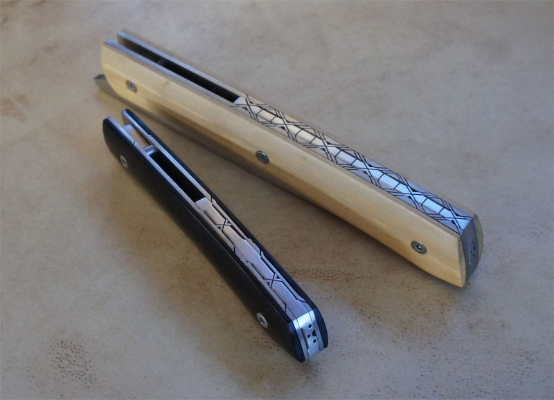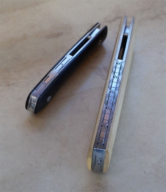 Treyssac -S- Niolox – Corne de Buffle Post author:cyrilka Post published:8 octobre 2015 Post category:Couteaux / Couteaux pliants / Treyssac Post comments:0 commentaire Couteau de type liner lock. Lame Niolox – plaquettes corne de Buffle – platines titane – guillochage. Pochette en cuir moulé. Longueur de lame : 6,7 cm. Longueur totale : 15 cm. Vous devriez également aimer Reka RwL34 & ébène royal du Laos – L.I.P 19 janvier 2017 Treyssac Art Deco – RWL34 – Palissandre et Noyer 14 avril 2014 Michto 115W8 & Fibre de carbone Lightning Strike 10 juin 2020 Laisser un commentaire Annuler la réponseCommentEnter your name or username to comment Enter your email address to comment Enter your website URL (optional) Enregistrer mon nom, mon e-mail et mon site dans le navigateur pour mon prochain commentaire. Je m'inscrit à la liste d'informations Δ Ce site utilise Akismet pour réduire les indésirables. En savoir plus sur comment les données de vos commentaires sont utilisées.