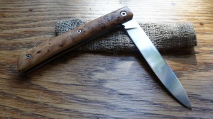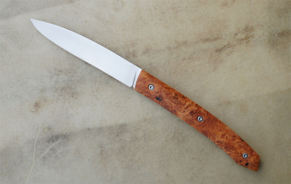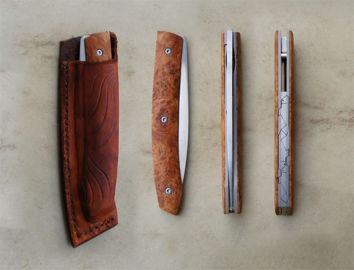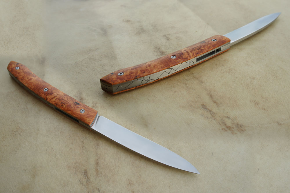 Treyssac Rwl34 & Amboine – pochette cuir Post author:cyrilka Post published:8 octobre 2015 Post category:Couteaux / Couteaux pliants / Treyssac Post comments:1 commentaire Couteau de type liner lock. Lame Rwl34 – plaquettes loupe d’amboine – platines titane – guillochage poisson. Pochette en cuir moulé. Longueur de lame : 9,1 cm. Longueur totale : 19,9 cm. Tags: artisanale, chenailler, chenailler mascheix, corrèze, couteau, couteau pliant, coutellerie, cuir, cyril kalisz, demontable, guillochage, inox, inoxydable, kalisz, Liner lock, loupe d'amboine, mascheix, moulé, pochette, RWL34, titane, Treyssac Read more articles Article précédentReka Niolox et Buis – Pochette Article suivantDoigt d’Argent – Niolox et Bouleau Vous devriez également aimer Couteau fixe – cuisine 30 juin 2016 Reka Noyer et XC100 20 février 2016 Doigt d’Argent Noyer 10 janvier 2012 La publication a un commentaire IMBERT Fabrice 19 Nov 2015 Répondre Bonsoir, Le Treyssac amboine est-il dispo ? Quel est son prix, quelles sont les conditions de vente ? Merci pour votre réponse. Cordialement Laisser un commentaire Annuler la réponseCommentEnter your name or username to comment Enter your email address to comment Enter your website URL (optional) Enregistrer mon nom, mon e-mail et mon site dans le navigateur pour mon prochain commentaire. Je m'inscrit à la liste d'informations Δ Ce site utilise Akismet pour réduire les indésirables. En savoir plus sur comment les données de vos commentaires sont utilisées.