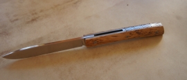 Doigt d’Argent – Niolox et Bouleau Post author:cyrilka Post published:12 novembre 2015 Post category:Couteaux / Couteaux pliants / Doigt d'Argent Post comments:0 commentaire Couteau de type liner lock. Lame Niolox – plaquettes Bouleau – platines titane – guillochage Longueur de lame : 9,5 cm. Longueur totale : 20,8 cm. Tags: artisanale, bouleau, chenailler, chenailler mascheix, corrèze, couteau, couteau pliant, coutellerie, cyril kalisz, demontable, Doigt d'Argent, guillochage, inox, inoxydable, kalisz, Liner lock, mascheix, niolox, norvege, pliant, titane Read more articles Article précédentTreyssac Rwl34 & Amboine – pochette cuir Article suivantTanKaTo – 14c28n – Buis Vous devriez également aimer Reka Ebène et Niolox – traitement BDB 15 mai 2016 Doigt d’Argent Niolox & Olivier 3 avril 2014 Nomade 115W8 & vieux chêne 8 décembre 2019 Laisser un commentaire Annuler la réponseCommentEnter your name or username to comment Enter your email address to comment Enter your website URL (optional) Enregistrer mon nom, mon e-mail et mon site dans le navigateur pour mon prochain commentaire. Je m'inscrit à la liste d'informations Δ Ce site utilise Akismet pour réduire les indésirables. En savoir plus sur comment les données de vos commentaires sont utilisées.