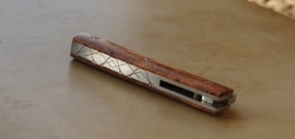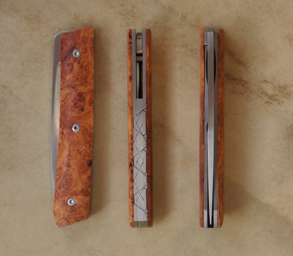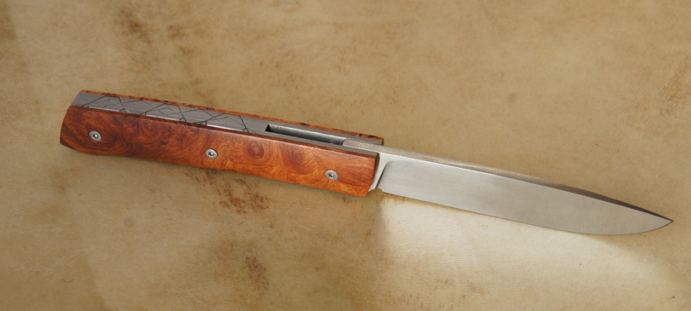 Reka -M- 14c28n et Amboine Post author:cyrilka Post published:29 novembre 2015 Post category:Couteaux / Couteaux pliants / Reka Post comments:1 commentaire Couteau de type liner lock. Lame 14c28N – plaquettes loupe d’amboine – platines titane – guillochage Longueur de lame : 8,8 cm. Longueur totale : 17,4 cm. Tags: 14c28n, amboine, artisanal, chenailler, chenailler mascheix, corrèze, couteau, coutellerie, cyril kalisz, demontable, guillochage, inox, inoxydable, kalisz, liner, Liner lock, loupe, mascheix, ReKa, stabilisée, titane Read more articles Article précédentTreyssac -M- 14c28N & Noyer Article suivantCouteau droit Vous devriez également aimer LinerKa 9 février 2011 P’tit Incas Noyer 28 juin 2011 Guardian Loupe de Buis & 14c28n Mitres Fines 10 juillet 2017 La publication a un commentaire Jean-François 2 Jan 2016 Répondre Bonjour monsieur, Bravo pour ces jolis couteaux, quel beau travail. Pouvez-vous m’indiquer le prix d’un comme celui-ci ? Merci beaucoup. Laisser un commentaire Annuler la réponseCommentEnter your name or username to comment Enter your email address to comment Enter your website URL (optional) Enregistrer mon nom, mon e-mail et mon site dans le navigateur pour mon prochain commentaire. Je m'inscrit à la liste d'informations Δ Ce site utilise Akismet pour réduire les indésirables. En savoir plus sur comment les données de vos commentaires sont utilisées.
