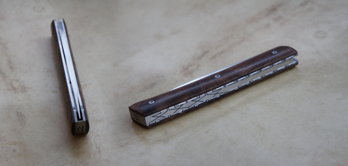 Reka RWL34 et Noyer Stabilisé – Cran forcé Post author:cyrilka Post published:12 janvier 2016 Post category:Couteaux / Couteaux pliants / Reka Post comments:0 commentaire Couteau pliant cran forcé. Lame RWL34 – plaquettes loupe de noyer stabilisé – platines titane – guillochage Longueur de lame : 9,6 cm. Longueur totale : 20,6 cm. Tags: artisanal, chenailler, chenailler mascheix, corrèze, couteau, coutellerie, cyril kalisz, demontable, guillochage, inox, inoxydable, kalisz, Liner lock, mascheix, noyer, noyer stabilisé, ReKa, RWL34 Read more articles Article précédentReka 90Mcv8 & Noyer stabilisé Article suivantDoigt d’Argent – 14c28n et Tuya Vous devriez également aimer Treyssac Fusion 14c28n & loupe de buis – mitres 1 avril 2019 Guardian 125SC & Bois de Fer 2 novembre 2017 Reka RWL34 et Buffle noir 5 septembre 2014 Laisser un commentaire Annuler la réponseCommentEnter your name or username to comment Enter your email address to comment Enter your website URL (optional) Enregistrer mon nom, mon e-mail et mon site dans le navigateur pour mon prochain commentaire. Je m'inscrit à la liste d'informations Δ Ce site utilise Akismet pour réduire les indésirables. En savoir plus sur comment les données de vos commentaires sont utilisées.