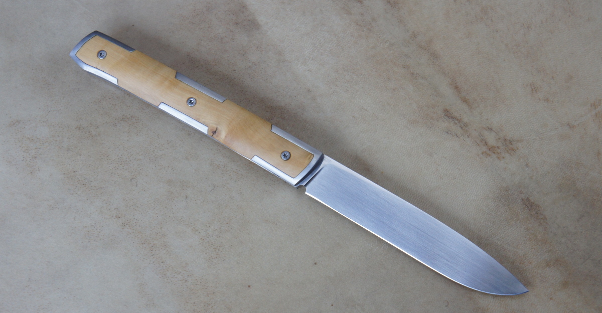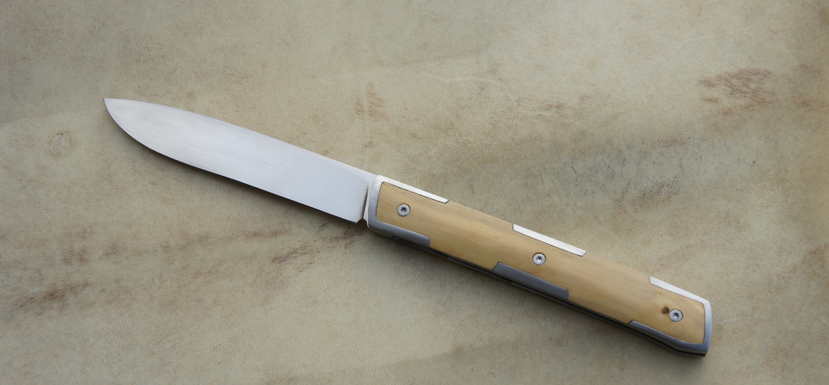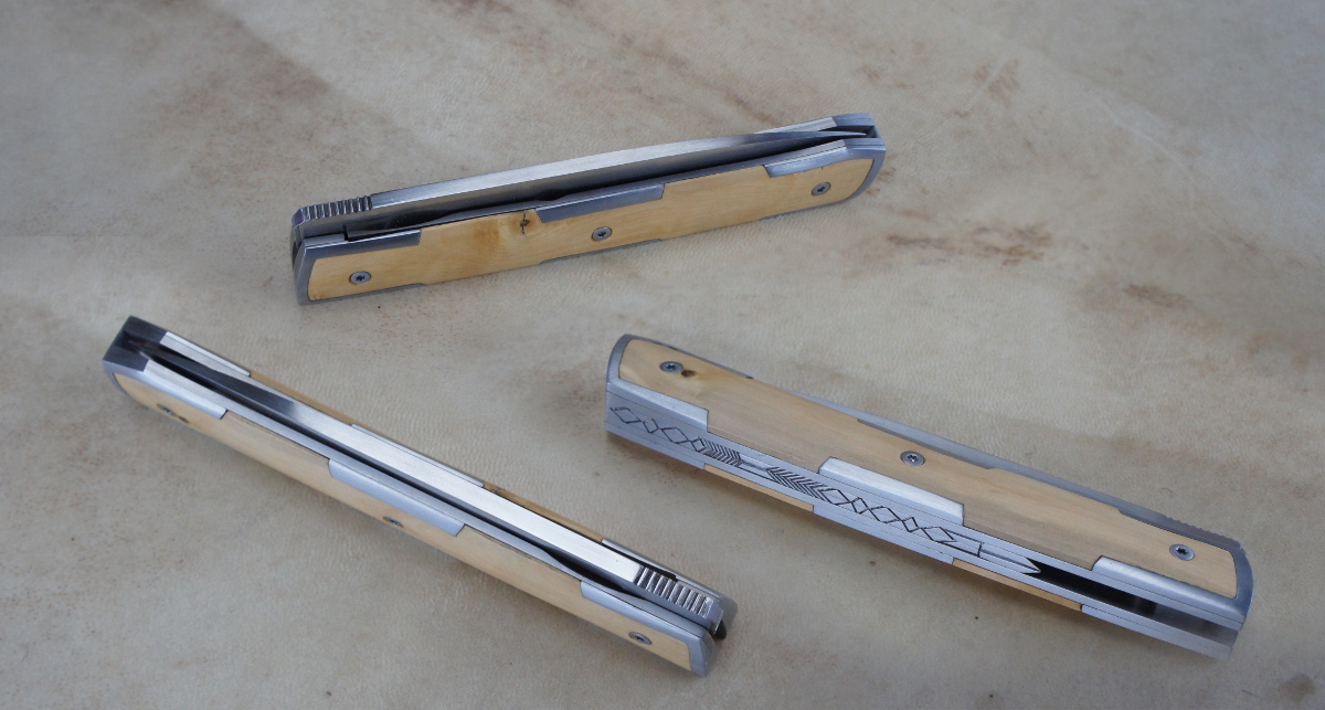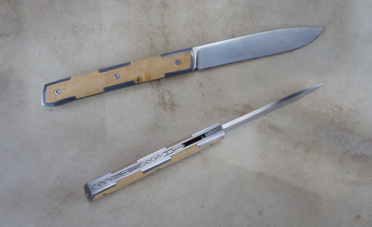 Reka Buis & RWL34 – Mitres armures Post author:cyrilka Post published:11 février 2016 Post category:Autres pliants / Couteaux / Couteaux pliants / Reka Post comments:1 commentaire Couteau pliant de type liner lock. Lame RWL34 – 6 mitres armures – plaquettes Buis – platines titane – guillochage sur fausse pièce deux pièces Titane. Longueur de lame : 9,5 cm. Longueur totale : 20,8 cm. Tags: artisanal, buis, chenailler, chenailler mascheix, corrèze, couteau, coutellerie, cyril kalisz, demontable, fines, guillochage, inox, inoxydable, kalisz, Liner lock, mascheix, mitres, ReKa, RWL34 Read more articles Article précédentDoigt d’Argent – 14c28n et Tuya Article suivantWIP – Reka buis & mitres armures Vous devriez également aimer Reka 90McV8 & Bouleau – parkérisé 8 janvier 2017 Icitte RWL34 & corne de buffle 18 septembre 2021 Nomade 115W8 & bois de cerf 10 novembre 2019 La publication a un commentaire daniel 15 Fév 2016 Répondre Magnifique , bravo ! Laisser un commentaire Annuler la réponseCommentEnter your name or username to comment Enter your email address to comment Enter your website URL (optional) Enregistrer mon nom, mon e-mail et mon site dans le navigateur pour mon prochain commentaire. Je m'inscrit à la liste d'informations Δ Ce site utilise Akismet pour réduire les indésirables. En savoir plus sur comment les données de vos commentaires sont utilisées.