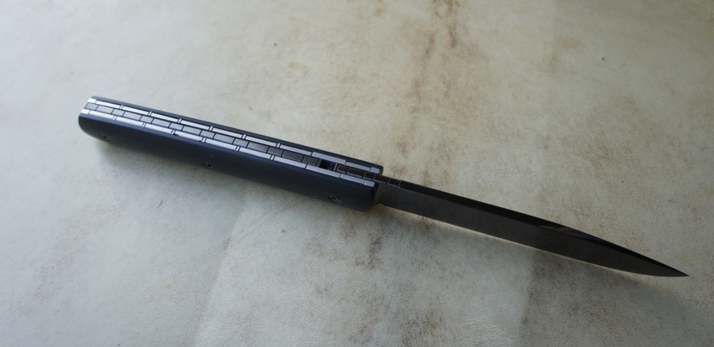 Reka Ebène et Niolox – traitement BDB Post author:cyrilka Post published:15 mai 2016 Post category:Couteaux / Couteaux pliants / Reka Post comments:0 commentaire Couteau pliant de type liner lock. Lame Niolox – plaquettes ébène – platines titane – guillochage – traitement noir Balinit Deep Black. Longueur de lame : 9,7 cm. Longueur totale : 21 cm. vendu – réalisable sur commande Tags: artisanal, chenailler, chenailler mascheix, corrèze, couteau, coutellerie, cyril kalisz, demontable, DLC, ébène, guillochage, inox, inoxydable, kalisz, Liner lock, mascheix, niolox, ReKa Read more articles Article précédentTreyssac -M- Rwl34 et Buis Article suivantTreyssac XC100 et Noyer Vous devriez également aimer Reka RWL34 et Noyer Stabilisé 3 octobre 2016 BzH 15 mai 2011 Cuisines – offices et chef – Noyer et 14c28n 25 mai 2016 Laisser un commentaire Annuler la réponseCommentEnter your name or username to comment Enter your email address to comment Enter your website URL (optional) Enregistrer mon nom, mon e-mail et mon site dans le navigateur pour mon prochain commentaire. Je m'inscrit à la liste d'informations Δ Ce site utilise Akismet pour réduire les indésirables. En savoir plus sur comment les données de vos commentaires sont utilisées.