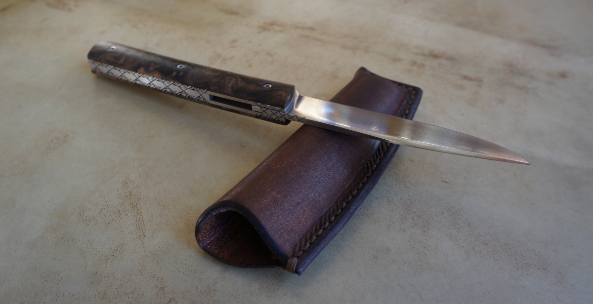 Reka 14c28n et noyer stabilisé Post author:cyrilka Post published:3 octobre 2016 Post category:Couteaux / Couteaux pliants / Reka Post comments:0 commentaire Couteau pliant de type liner lock. Lame inoxydable 14c28n – plaquettes noyer stabilisé – platines titane – guillochage – pochette cuir Longueur de lame : 9,5 cm. Longueur totale : 21 cm. vendu – réalisable sur commande Tags: 14c28n, artisanal, chenailler, chenailler mascheix, corrèze, couteau, coutellerie, cuir, cyril kalisz, demontable, guillochage, inox, inoxydable, kalisz, Liner lock, mascheix, noyer stabilisé, pochette, ReKa Read more articles Article précédentReka RWL34 et Noyer Stabilisé Article suivantReka 90McV8 & Noyer stabilisé Vous devriez également aimer Reka 14c28n & Bouleau de Norvège – Noir BdB 1 novembre 2016 Marcos 125Sc & Flecked Jarrah 3 octobre 2021 Reka Ebène et Niolox – traitement BDB 15 mai 2016 Laisser un commentaire Annuler la réponseCommentEnter your name or username to comment Enter your email address to comment Enter your website URL (optional) Enregistrer mon nom, mon e-mail et mon site dans le navigateur pour mon prochain commentaire. Je m'inscrit à la liste d'informations Δ Ce site utilise Akismet pour réduire les indésirables. En savoir plus sur comment les données de vos commentaires sont utilisées.