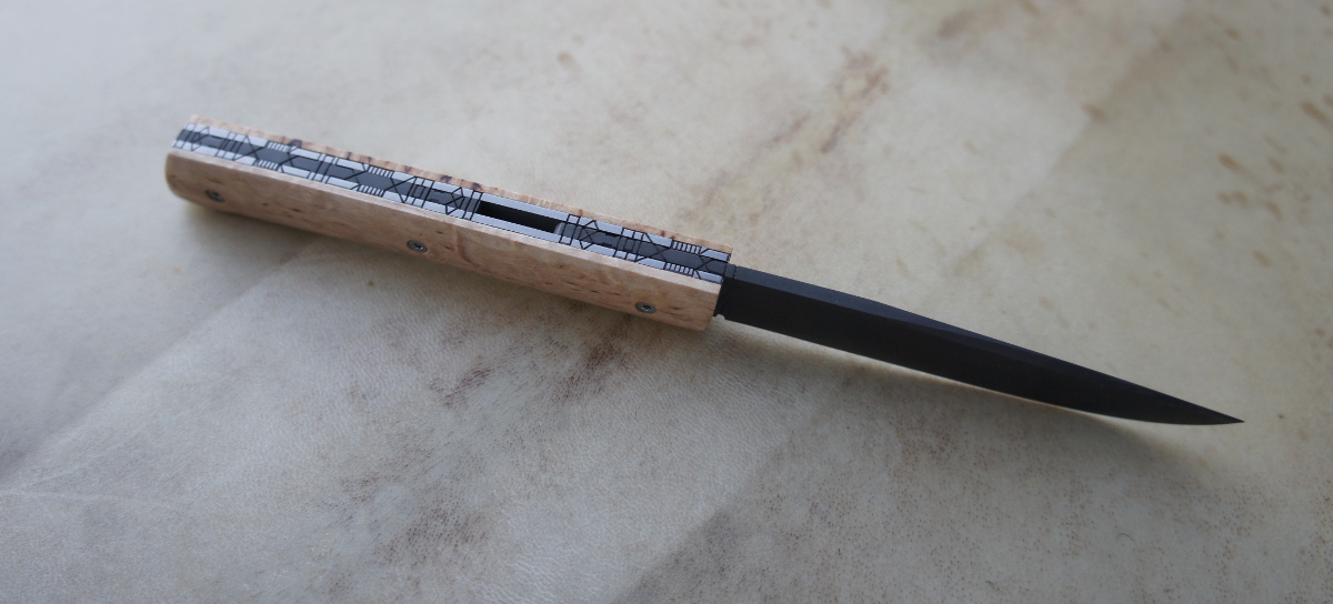 Reka 90McV8 & Bouleau – parkérisé Post author:cyrilka Post published:8 janvier 2017 Post category:Couteaux / Couteaux pliants / Reka Post comments:0 commentaire Couteau de type liner lock. Lame 90MCV8 parkérisée – plaquettes Bouleau – platines titane – guillochage Longueur de lame : 9,8 cm. Longueur totale : 21 cm. vendu – réalisable sur commande Tags: 90mcv8, artisanal, bouleau, chenailler, chenailler mascheix, corrèze, couteau, coutellerie, cyril kalisz, demontable, guillochage, kalisz, liner, Liner lock, mascheix, parkérisation, parkérisé, ReKa, titane Read more articles Article précédentRond 14c28n & Noyer stabilisé Article suivantReka RwL34 & ébène royal du Laos – L.I.P Vous devriez également aimer Treyssac Fusion 14c28n & loupe de buis – mitres 9 avril 2018 Guardian 125Sc & Bois de Cerf – mitres 19 novembre 2016 Reka Buis & RWL34 – Mitres armures 11 février 2016 Laisser un commentaire Annuler la réponseCommentEnter your name or username to comment Enter your email address to comment Enter your website URL (optional) Enregistrer mon nom, mon e-mail et mon site dans le navigateur pour mon prochain commentaire. Je m'inscrit à la liste d'informations Δ Ce site utilise Akismet pour réduire les indésirables. En savoir plus sur comment les données de vos commentaires sont utilisées.
