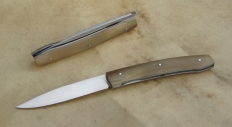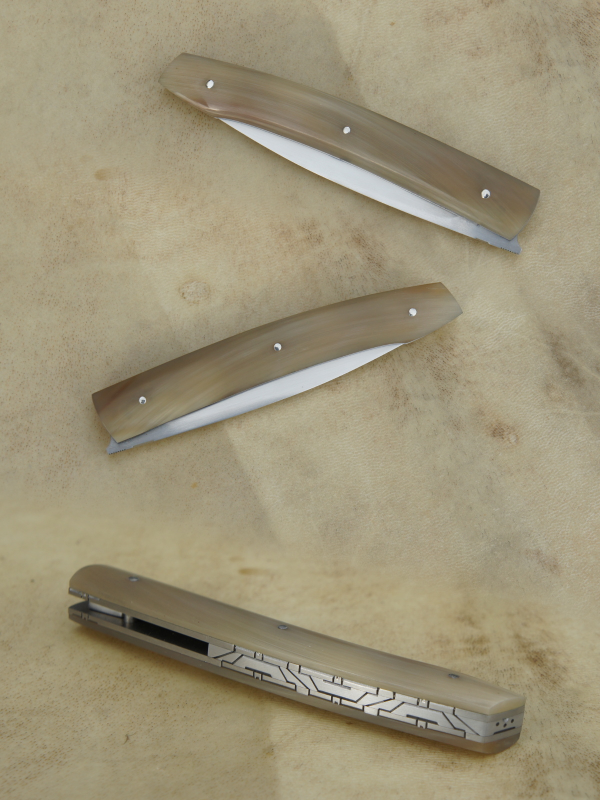 Treyssac – Corne blonde & 14c28n Post author:cyrilka Post published:12 mai 2017 Post category:Couteaux / Couteaux pliants / Treyssac Post comments:0 commentaire Couteau de type liner lock. Lame 14c28N – plaquettes corne blonde – rivets inox – platines titane – guillochage Longueur de lame : 9 cm. Longueur totale : 19,5 cm. Tags: 14c28n, artisanal, chenailler, chenailler mascheix, corne blonde, corrèze, couteau, coutellerie, cyril kalisz, guillochage, inox, inoxydable, kalisz, liner, Liner lock, mascheix, rivets, titane, Treyssac Read more articles Article précédentReka 14c28n & ébène Article suivantGuardian Bois de Fer et 14c28n – Mitres Vous devriez également aimer Nomade Super Gold & ébène 10 novembre 2019 Reka Ebène et Niolox – traitement BDB 15 mai 2016 Reka SHV & Amboine 10 octobre 2020 Laisser un commentaire Annuler la réponseCommentEnter your name or username to comment Enter your email address to comment Enter your website URL (optional) Enregistrer mon nom, mon e-mail et mon site dans le navigateur pour mon prochain commentaire. Je m'inscrit à la liste d'informations Δ Ce site utilise Akismet pour réduire les indésirables. En savoir plus sur comment les données de vos commentaires sont utilisées.