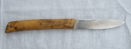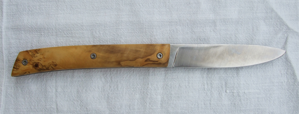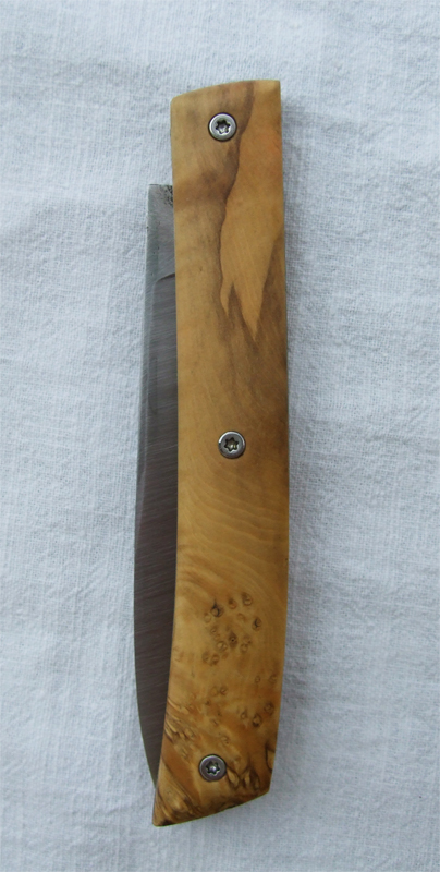Lame D2 – ressort inox ressort – manche buis – guillochage inca.