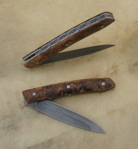 Lame RWL34 – liner inox ressort – manche ébène – guillochage inca echelle.