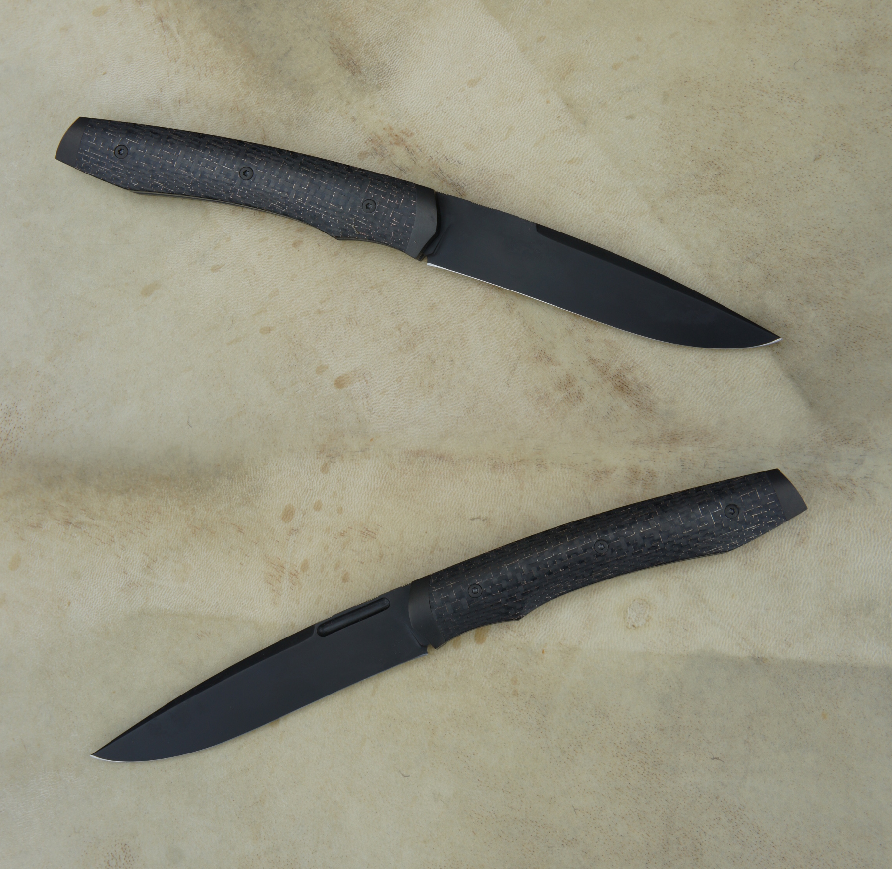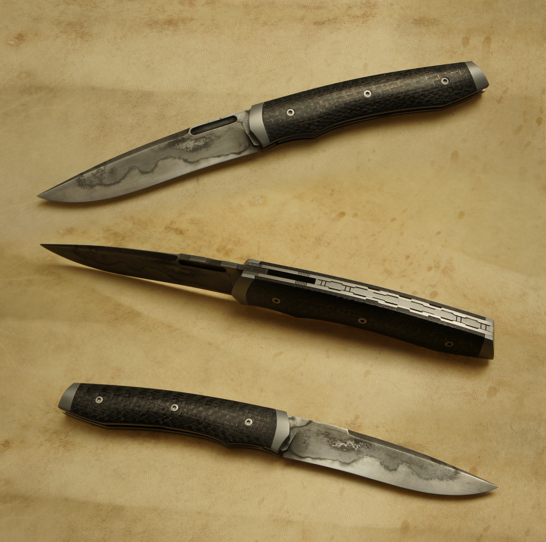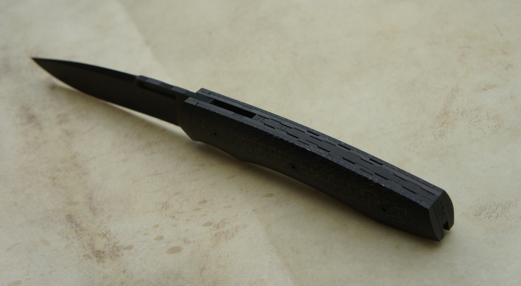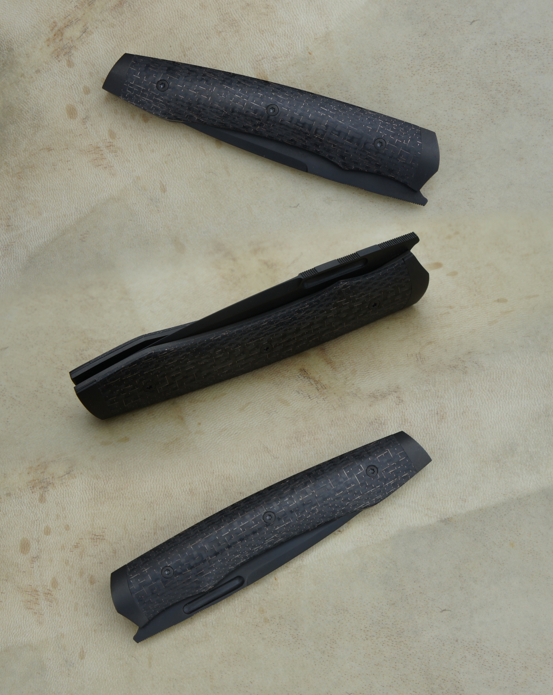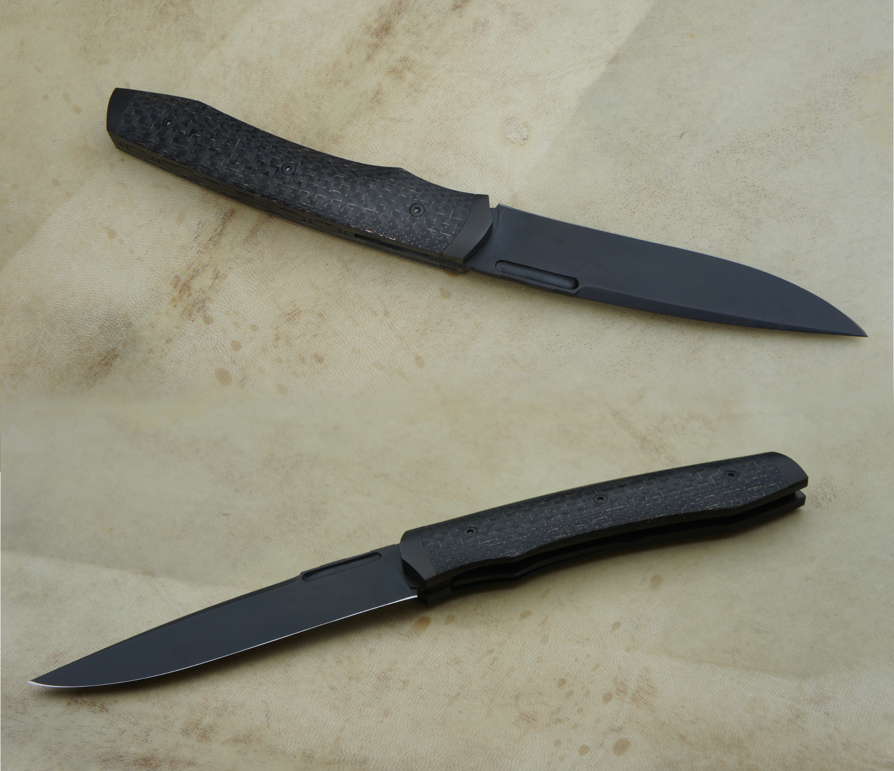 Lame 125Sc trempe sélective – mitres fines – plaquettes fibre de carbone lightning strike – traitement anti-rayures Bailinite Deep Black « BdB » – platines titane – guillochage