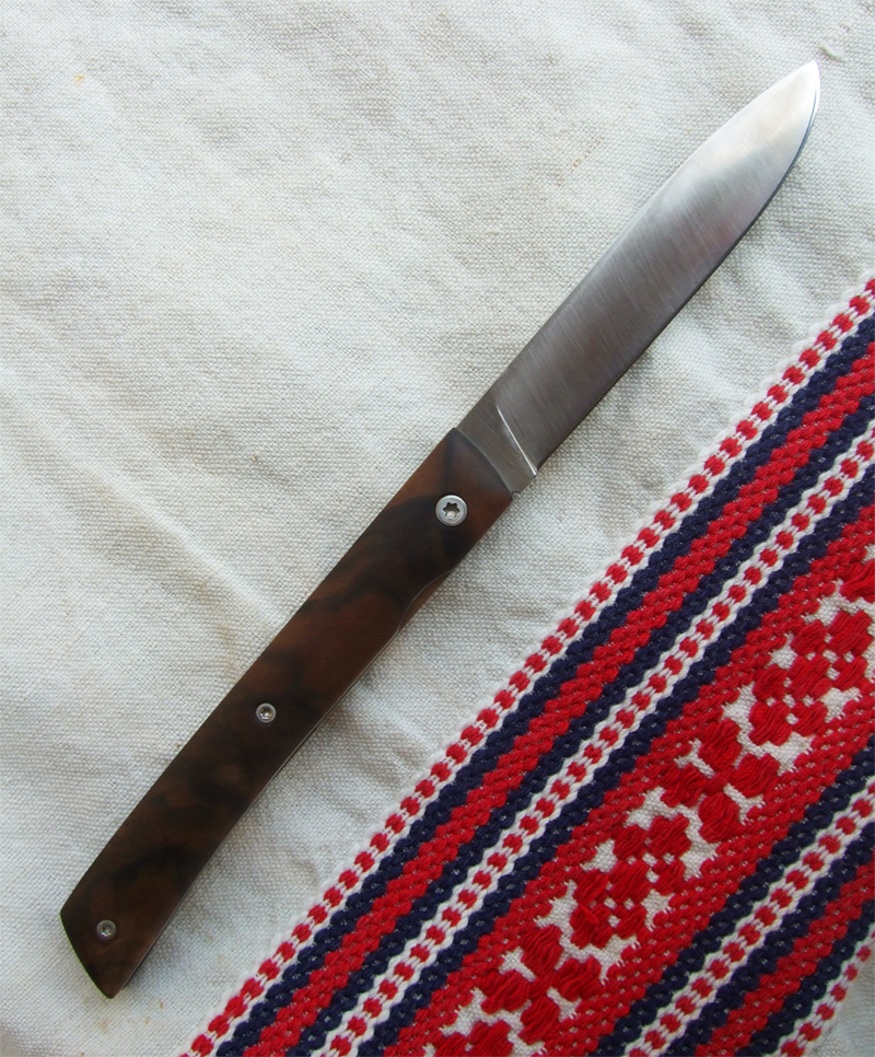 Lame RWL34 – liner inox ressort – manche Noyer – guillochage incas.