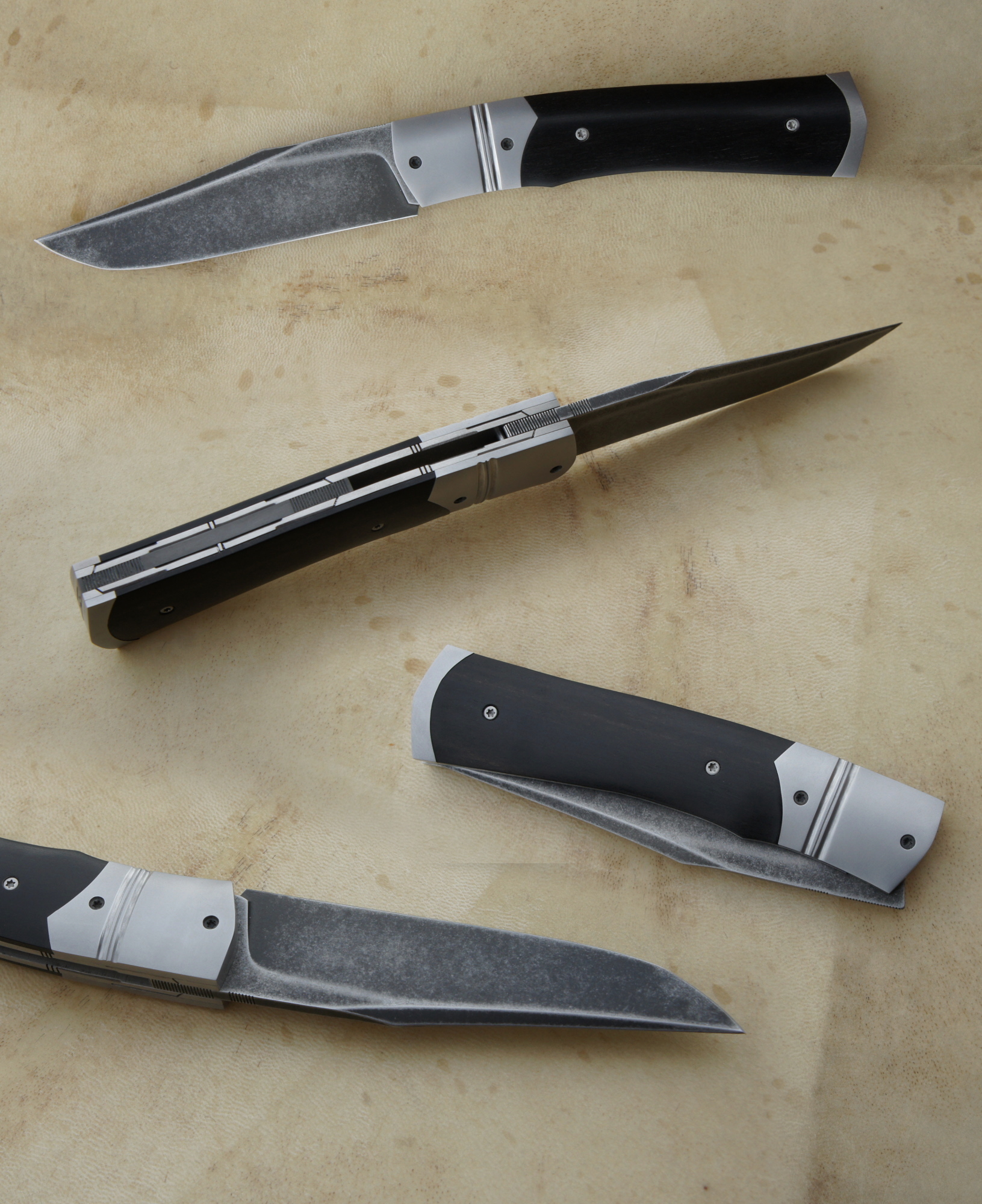 Tailleur pompe arrière – 14c28n & Ziricote – traitement noir anti-rayure DLC Balinit deep black – lame : 88 – total : 192mm disponible : 630€