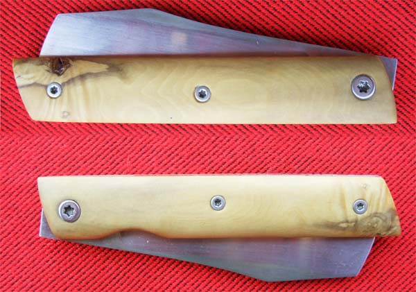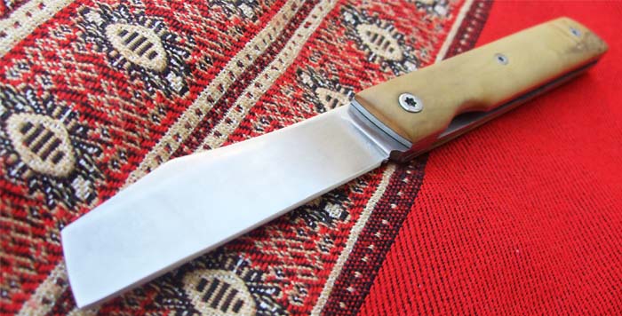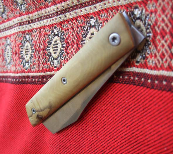Lame RWL34 – liner inox ressort – manche buis – guillochage incas.