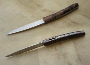 Oiseleur 125SC & Noyer stabilisé Post author:cyrilka Post published:20 mai 2019 Post category:Couteaux / Couteaux pliants / Oiseleur Post comments:0 commentaire Couteau pliant de type liner lock.Lame carbone 125SC trempe sélective – plaquettes loupe de noyer stabilisée – platines titane – guillochage -mitresLongueur de lame : 94 mm.Longueur totale : 202 mm. Vendu – disponible sur commande. Tags: 125SC, artisanal, carbone, chenailler, chenailler mascheix, corrèze, couteau, coutellerie, cyril kalisz, demontable, guillochage, kalisz, Liner lock, loupe de noyer, mascheix, mitres, noyer, oiseleur, stablisée, trempe selective Read more articles Article précédentOiseleur damas & ebène du Laos Article suivantGuardian Wootz & Caribou Vous devriez également aimer Reka RWL34 et bouleau stabilisé – pochette cuir 29 novembre 2017 Nomade Damas & loupe d’if 18 septembre 2021 Nomade 115W8 & bois de cerf 10 novembre 2019 Laisser un commentaire Annuler la réponseCommentEnter your name or username to comment Enter your email address to comment Enter your website URL (optional) Enregistrer mon nom, mon e-mail et mon site dans le navigateur pour mon prochain commentaire. Je m'inscrit à la liste d'informations Δ Ce site utilise Akismet pour réduire les indésirables. En savoir plus sur comment les données de vos commentaires sont utilisées.