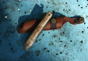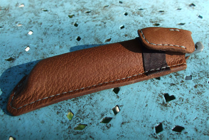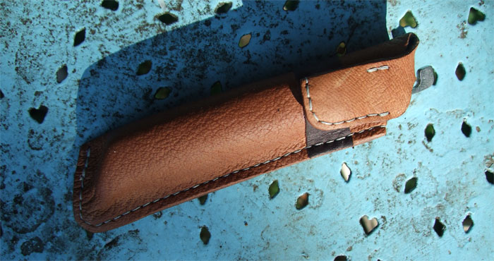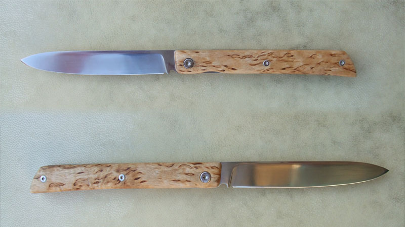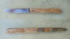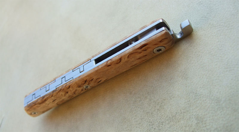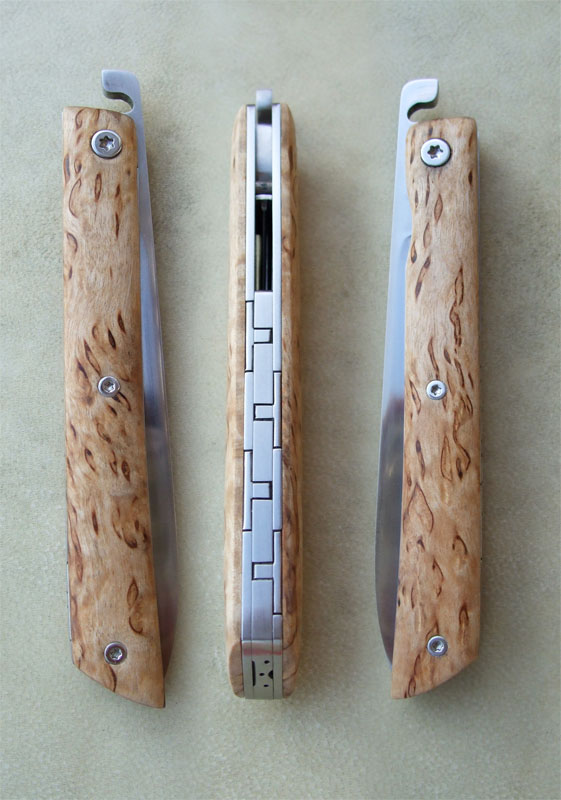 Lame RWL34 – manche Bouleau madré de Norvège – guillochage incas – pochette cuir souple avec aimant.