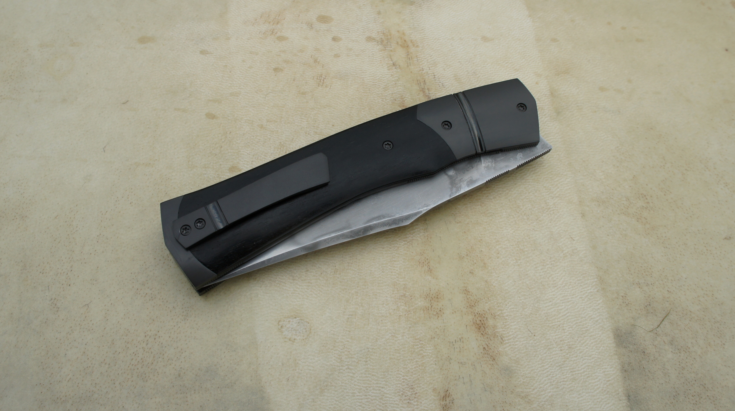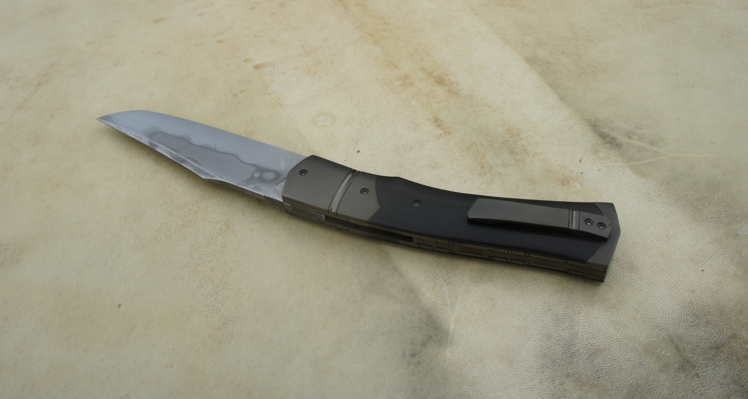 Oiseleur XC100 & ebène Post author:cyrilka Post published:11 mai 2020 Post category:Couteaux / Couteaux pliants / Oiseleur Post comments:0 commentaire Couteau pliant de type liner lock.Lame carbone XC100 trempe sélective – plaquettes ébène – platines titane – guillochage – mitres inox trempées – traitement noir Diamond Like CarbonLongueur de lame : 94 mm.Longueur totale : 202 mm. Tags: artisanal, carbone, chenailler, chenailler mascheix, correze, corrèze, couteau, coutellerie, cyril kalisz, demontable, diamond like carbon, DLC, ebène, guillochage, kalisz, Liner lock, mascheix, mitres, oiseleur, stablisée, trempe sélective, XC100 Read more articles Article précédentAlvilda Koa & SHV Article suivantOiseleur SuperGold & Fibre de carbone Vous devriez également aimer P’tit Incas Noyer 28 juin 2011 Treyssac Fusion Fibre de carbone Lightning Strike & 125SC – Bdb 17 août 2018 P’tit de Poche 25 juin 2011 Laisser un commentaire Annuler la réponseCommentEnter your name or username to comment Enter your email address to comment Enter your website URL (optional) Enregistrer mon nom, mon e-mail et mon site dans le navigateur pour mon prochain commentaire. Je m'inscrit à la liste d'informations Δ Ce site utilise Akismet pour réduire les indésirables. En savoir plus sur comment les données de vos commentaires sont utilisées.