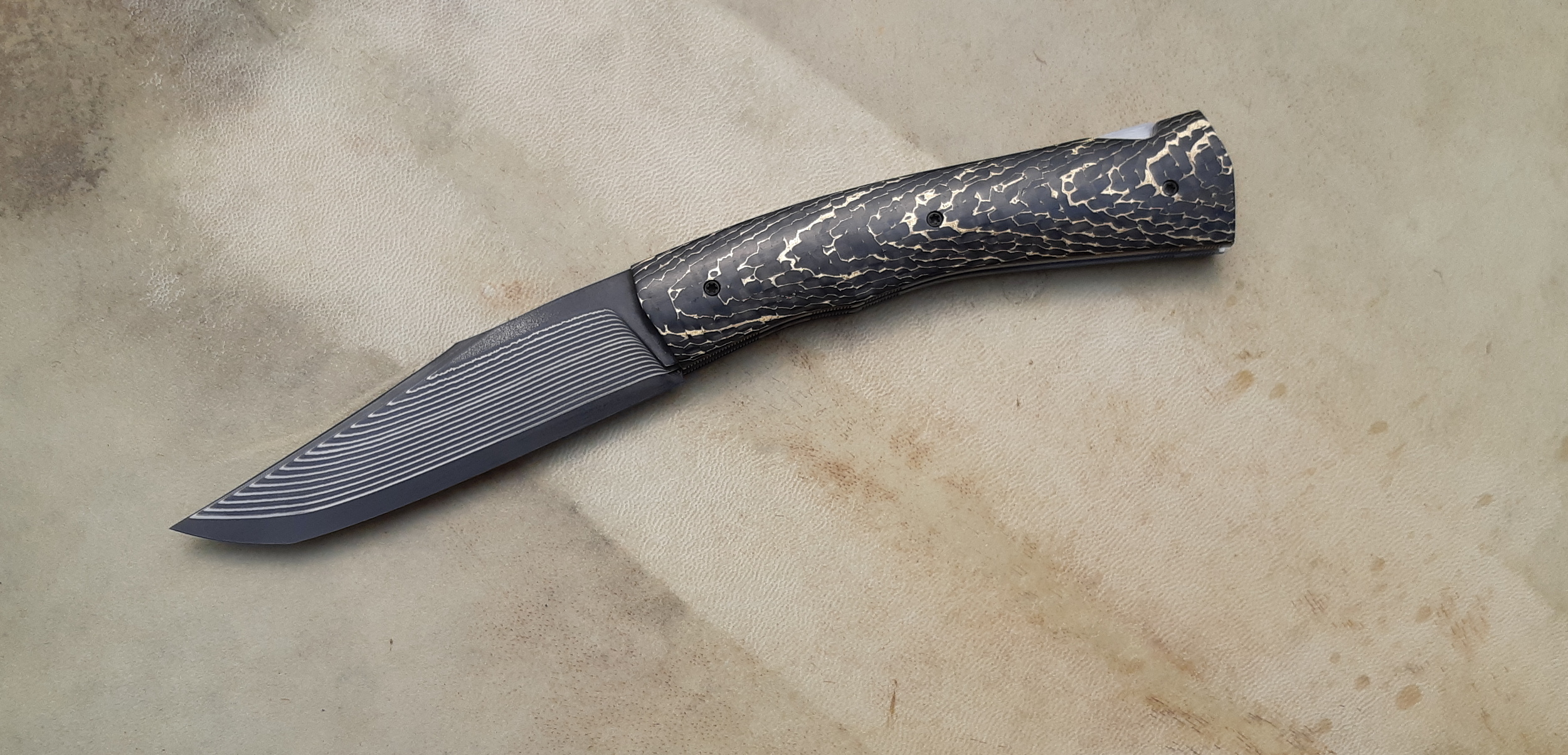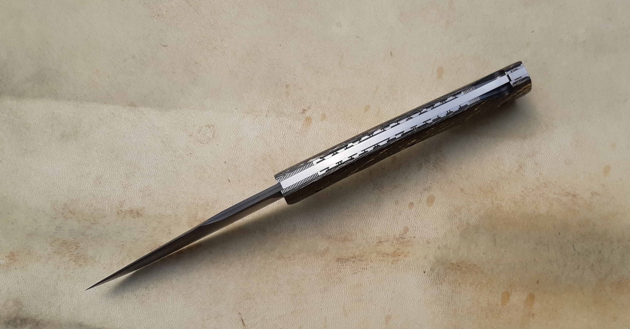 Oiseleur SuperGold & Fibre de carbone Post author:cyrilka Post published:26 mai 2020 Post category:Couteaux / Couteaux pliants / Oiseleur Post comments:0 commentaire Couteau pliant de type pompe arrièreLame inoxydable en suminagashi SuperGold SG-2 – plaquettes fibre de carbone – platines inoxydable – guillochageLongueur de lame : 92 mm.Longueur totale : 200 mm Vendu – réalisable sur commande Tags: artisanal, carbonewave, chenailler, chenailler mascheix, correze, corrèze, couteau, coutellerie, cyril kalisz, demontable, fibre de carbone, guillochage, inoxydable, kalisz, lock-back, mascheix, mitres, oiseleur, pompe arrière, SG-2, SG2, stablisée, suminagashi, supergold Read more articles Article précédentOiseleur XC100 & ebène Article suivantNomade RWL34 & Peuplier stabilisé Vous devriez également aimer Reka RWL34 & loupe d’amboine 17 août 2018 Haïdouc RWL34 & Space Coral Silver by FatCarbon 23 mars 2022 Icitte Wootz et Buffle noir 2 juillet 2019 Laisser un commentaire Annuler la réponseCommentEnter your name or username to comment Enter your email address to comment Enter your website URL (optional) Enregistrer mon nom, mon e-mail et mon site dans le navigateur pour mon prochain commentaire. Je m'inscrit à la liste d'informations Δ Ce site utilise Akismet pour réduire les indésirables. En savoir plus sur comment les données de vos commentaires sont utilisées.