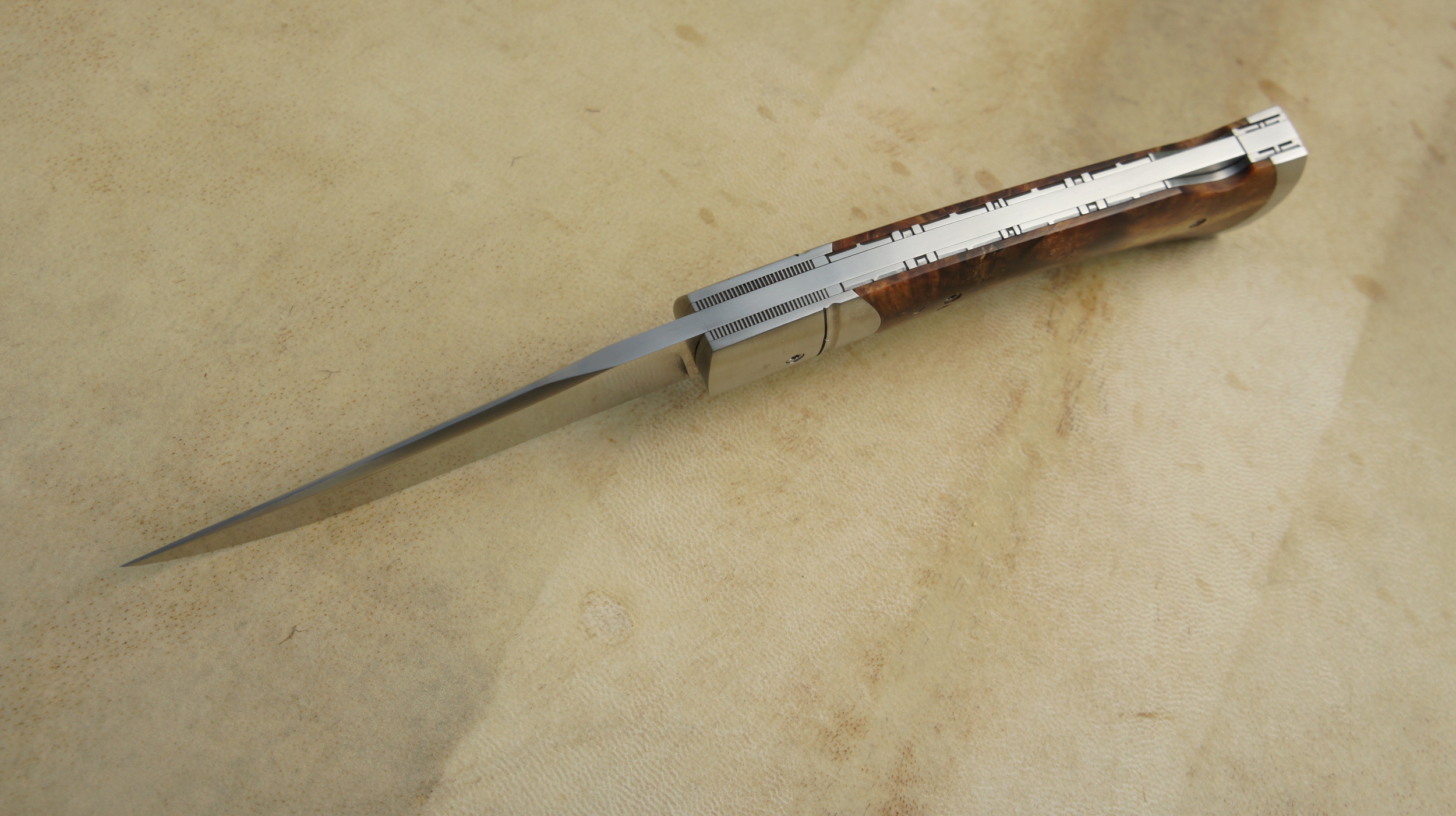 Nomade RWL34 & Peuplier stabilisé Post author:cyrilka Post published:10 juin 2020 Post category:Couteaux / Couteaux pliants / Nomade Post comments:0 commentaire Couteaux pliant à pompe arrière Lame inoxydable RWL34 Damasteel – loupe de peuplier stabilisée – platines inox – guillochage -mitres inox trempées.Longueur de lame : 88 mm.Longueur totale : 191 mm. Tags: artisanal, chenailler, chenailler mascheix, correze, corrèze, couteau, coutellerie, cyril kalisz, damasteel, demontable, guillochage, inox, inoxydable, kalisz, loupe de peuplier, mascheix, mitres, nomade, pompe arrière, RWL34, stabilisée, trempées Read more articles Article précédentOiseleur SuperGold & Fibre de carbone Article suivantNuevo 130WCrv5 & Chataîgner stabilisé Vous devriez également aimer Treyssac XC100 et Robinier 6 mai 2016 Tailleur RWL34 & Buffle d’eau 27 mars 2022 Reka Ebène & RWL34 1 avril 2016 Laisser un commentaire Annuler la réponseCommentEnter your name or username to comment Enter your email address to comment Enter your website URL (optional) Enregistrer mon nom, mon e-mail et mon site dans le navigateur pour mon prochain commentaire. Je m'inscrit à la liste d'informations Δ Ce site utilise Akismet pour réduire les indésirables. En savoir plus sur comment les données de vos commentaires sont utilisées.