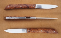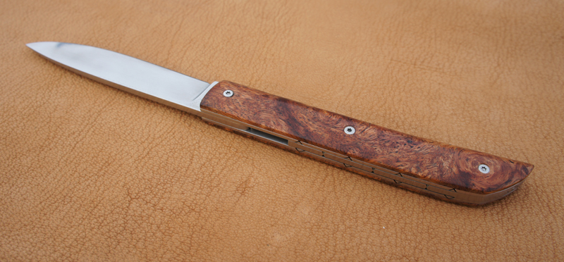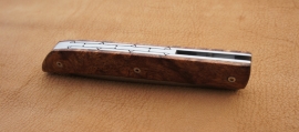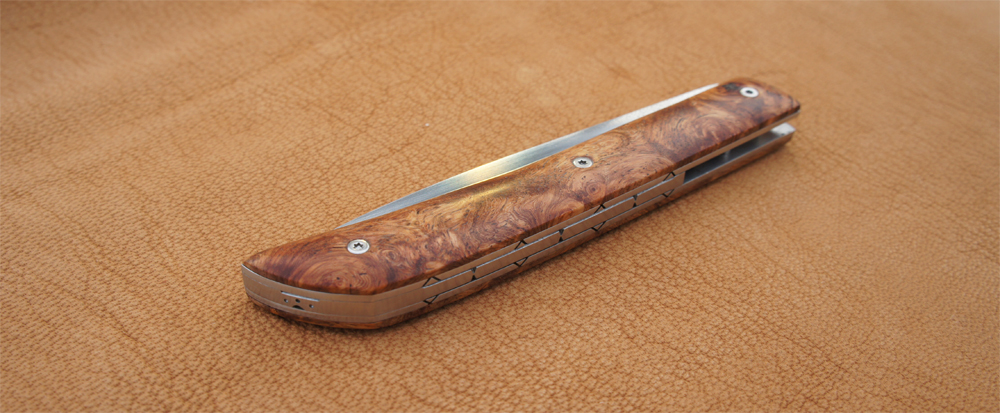 LinerKa – Niolox & Amboine Post author:cyrilka Post published:7 avril 2013 Post category:Couteaux / Couteaux pliants / LinerKa Post comments:2 commentaires Couteau de type liner lock. Lame Niolox – manche Amboine – guillochage. Longueur de lame : 9 cm. Longueur totale : 21 cm. Tags: couteau, couteau pliant, coutellerie, cyril kalisz, demontable, guillochage, inox, inoxydable, kalisz, Liner lock, LinerKa, loupe d'amboine, mitres inox, niolox, pliant, Z20Cr13 Read more articles Article précédentDoigt d’Argent – RWL34 et Olivier Article suivantP’tit de Poche – Noyer et Rwl34 Vous devriez également aimer Alvilda 125Sc & bois de Cerf 28 octobre 2020 Guardian 14c28n & loupe de palissandre du Honduras 2 janvier 2018 Oiseleur SGPS et fibre de carbone 27 septembre 2019 Cet article a 2 commentaires Le Bolloch didier 16 Nov 2013 Répondre Bonjour Je suis très intéressée par votre réalisation LinerKa – Niolox & Amboine quel est son prix S.V.P et le délai de fabrication ? Cordialement. Didier Le Bolloch SIERRA 2 Jan 2014 Répondre Bonjour Je suis très intéressé par votre réalisation LinerKa – Niolox & Amboine quel est son prix S.V.P et le délai de fabrication ? Cordialement. MANUEL SIERRA Laisser un commentaire Annuler la réponseCommentEnter your name or username to comment Enter your email address to comment Enter your website URL (optional) Enregistrer mon nom, mon e-mail et mon site dans le navigateur pour mon prochain commentaire. Je m'inscrit à la liste d'informations Δ Ce site utilise Akismet pour réduire les indésirables. En savoir plus sur comment les données de vos commentaires sont utilisées.