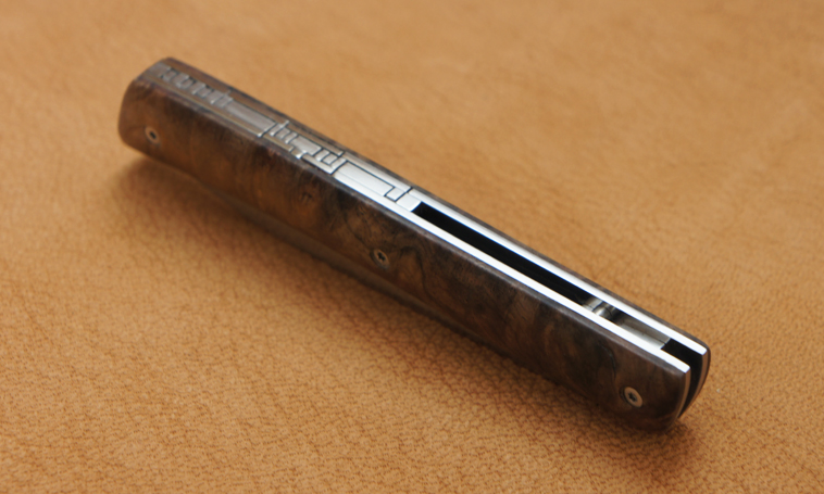 Doigt d'argent niolox noyer Doigt d’Argent – Niolox & Noyer Post author:cyrilka Post published:16 juillet 2013 Post category:Couteaux pliants / Doigt d'Argent Post comments:0 commentaire Couteau de type liner lock. Lame Niolox – manche Noyer – guillochage. Longueur de lame : 9,3 cm. Longueur totale : 21,3 cm. Tags: couteau, couteau pliant, coutellerie, cyril, cyril kalisz, demontable, guillochage, inox, inoxydable, kalisz, Liner lock, niolox, noyer, pliant, Z20Cr13 Read more articles Article précédentDoigt d’Argent – 100MnCrW4 (O1 – 1.2510) & Noyer Article suivantDoigt d’Argent Niolox Noyer & étuis Vous devriez également aimer Rond RWL34 et bois de Fer 24 septembre 2018 Reka Bocote & 14c28n 13 novembre 2016 LinerKa 10 juillet 2011 Laisser un commentaire Annuler la réponseCommentEnter your name or username to comment Enter your email address to comment Enter your website URL (optional) Enregistrer mon nom, mon e-mail et mon site dans le navigateur pour mon prochain commentaire. Je m'inscrit à la liste d'informations Δ Ce site utilise Akismet pour réduire les indésirables. En savoir plus sur comment les données de vos commentaires sont utilisées.