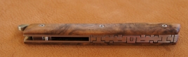 Reka – Niolox – Noyer Post author:cyrilka Post published:24 octobre 2013 Post category:Couteaux / Couteaux pliants / Reka Post comments:0 commentaire Couteau de type liner lock. Lame Niolox – manche Noyer – guillochage. Longueur de lame : 9,3 cm. Longueur totale : 20,6 cm. Tags: couteau, couteau pliant, coutellerie, cyril, cyril kalisz, demontable, guillochage, inox, inoxydable, kalisz, Liner lock, niolox, noyer, pliant, ReKa, Z20Cr13 Read more articles Article précédentReka – Niolox – Noyer & Pochette Article suivantReka – RWL34 – Ebène & Etuis Vous devriez également aimer Reka Niolox et Buis – Pochette 8 octobre 2015 Treyssac Art Deco – RWL34 – Palissandre et Noyer 14 avril 2014 Couteau de Chasse 2 janvier 2015 Laisser un commentaire Annuler la réponseCommentEnter your name or username to comment Enter your email address to comment Enter your website URL (optional) Enregistrer mon nom, mon e-mail et mon site dans le navigateur pour mon prochain commentaire. Je m'inscrit à la liste d'informations Δ Ce site utilise Akismet pour réduire les indésirables. En savoir plus sur comment les données de vos commentaires sont utilisées.