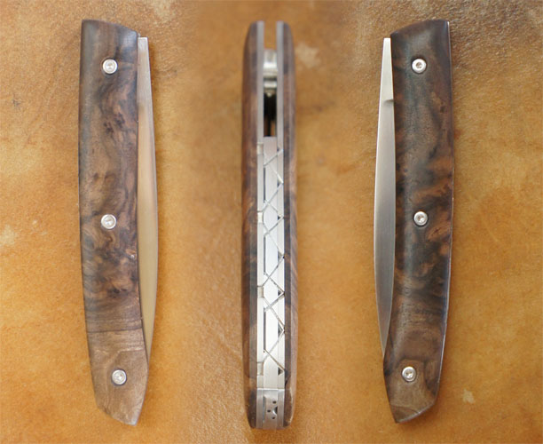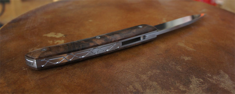 Treyssac – RwL34 et Noyer stabilisé Post author:cyrilka Post published:11 août 2014 Post category:Couteaux / Couteaux pliants / Treyssac Post comments:0 commentaire Couteau de type liner lock. Lame RWL34 – manche noyer stabilisé – platines titane – guillochage. Longueur de lame : 8,8 cm. Longueur totale : 19,2 cm. Tags: acier des poudres, artisan, artisanale, couteau, couteau pliant, coutellerie, cyril, cyril kalisz, demontable, guillochage, inox, inoxydable, kalisz, Liner lock, noyer, noyer stabilisé, original, pliant, RWL34, titane, Treyssac Read more articles Article précédentDoigt d’Argent RWL34 et Bois de Fer Article suivantRond RWL34 et Noyer Vous devriez également aimer Treyssac Fusion 125sC & Ebène équitable du Saèl 29 juillet 2017 P’tit de Poche 25 juin 2011 Treyssac 25 septembre 2013 Laisser un commentaire Annuler la réponseCommentEnter your name or username to comment Enter your email address to comment Enter your website URL (optional) Enregistrer mon nom, mon e-mail et mon site dans le navigateur pour mon prochain commentaire. Je m'inscrit à la liste d'informations Δ Ce site utilise Akismet pour réduire les indésirables. En savoir plus sur comment les données de vos commentaires sont utilisées.