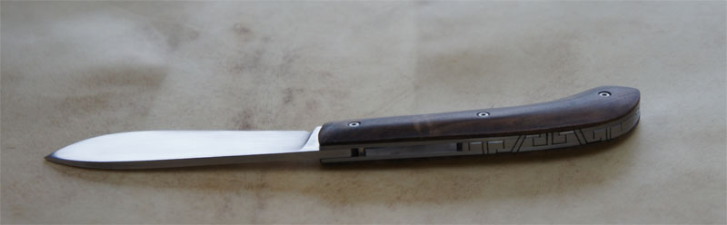 Rond RWL34 et Noyer Post author:cyrilka Post published:2 septembre 2014 Post category:Autres pliants / Couteaux pliants Post comments:0 commentaire Couteau de type liner lock. Lame RWL34 – manche noyer – platines titane – guillochage. Longueur de lame : 9,2 cm. Longueur totale : 21 cm. Tags: acier des poudres, couteau, couteau pliant, coutellerie, cyril, cyril kalisz, demontable, guillochage, inox, inoxydable, kalisz, Liner lock, noyer, pliant, RWL34 Read more articles Article précédentTreyssac – RwL34 et Noyer stabilisé Article suivantReka RWL34 et Buffle noir Vous devriez également aimer Reka -M- XC75 trempe sélective – loupe de noyer stabilisée 8 mai 2015 Nuevo 130WCrv5 & Chataîgner stabilisé 10 juin 2020 Nomade 14c28n & fibre de carbone 10 novembre 2019 Laisser un commentaire Annuler la réponseCommentEnter your name or username to comment Enter your email address to comment Enter your website URL (optional) Enregistrer mon nom, mon e-mail et mon site dans le navigateur pour mon prochain commentaire. Je m'inscrit à la liste d'informations Δ Ce site utilise Akismet pour réduire les indésirables. En savoir plus sur comment les données de vos commentaires sont utilisées.