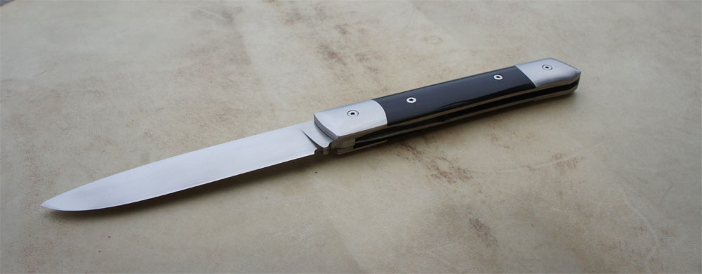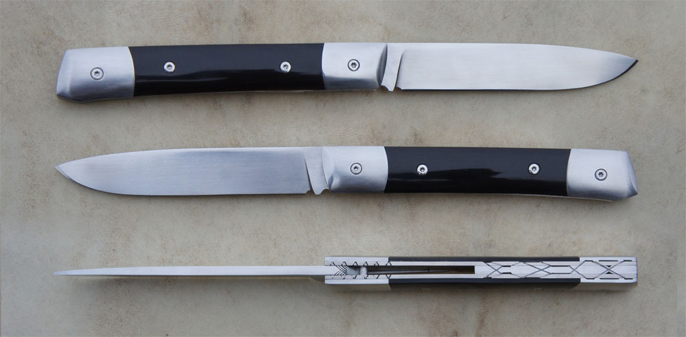 Reka RWL34 et Buffle noir Post author:cyrilka Post published:5 septembre 2014 Post category:Couteaux pliants / Reka Post comments:0 commentaire Couteau de type liner lock. Lame RWL34 – plaquettes buffle noir – mitres Z20Cr13 – platines titane – guillochage. Longueur de lame : 9,6 cm. Longueur totale : 20,9 cm. Bagues en maillechort tressé. Tags: acier des poudres, buffle, corne, couteau, couteau pliant, coutellerie, cyril, cyril kalisz, demontable, guillochage, inox, inoxydable, kalisz, Liner lock, mitres, mitres inox, noir, pliant, ReKa, RWL34, titane, Z20Cr13 Read more articles Article précédentRond RWL34 et Noyer Article suivant4 Petits Treyssac Vous devriez également aimer BzH 15 mai 2011 Nomade Suminagahsi Aura & bois de renne 18 septembre 2021 Reka 90mcV8 & tire-bouchon 12 décembre 2017 Laisser un commentaire Annuler la réponseCommentEnter your name or username to comment Enter your email address to comment Enter your website URL (optional) Enregistrer mon nom, mon e-mail et mon site dans le navigateur pour mon prochain commentaire. Je m'inscrit à la liste d'informations Δ Ce site utilise Akismet pour réduire les indésirables. En savoir plus sur comment les données de vos commentaires sont utilisées.