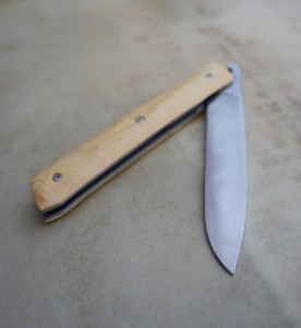 Lame inoxydable SHV – plaquettes loupe d’amboine – platines titane – guillochage – roulements butées à billes
