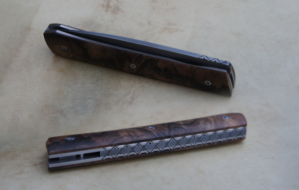 Reka Noyer et XC100 Post author:cyrilka Post published:20 février 2016 Post category:Couteaux / Couteaux pliants / Reka Post comments:2 commentaires Couteau de type liner lock. Lame xc100 trempe sélective – plaquettes loupe de noyer stabilisé – platines titane – guillochage Longueur de lame : 8,8 cm. Longueur totale : 19,5 cm. Tags: artisanal, chenailler, chenailler mascheix, corrèze, couteau, coutellerie, cyril kalisz, demontable, guillochage, kalisz, Liner lock, loupe, mascheix, noyer, rekaliner, stabilisée, titane, trempe seclective, XC100 Read more articles Article précédentTreyssac Noyer et XC100 Article suivantTreyssac Corne de Buffle et 14c28n Vous devriez également aimer Treyssac Fusion RWL34 & Hêtre stabilisé 18 février 2022 Treyssac XC100 et Noyer – Lip 23 juin 2016 Treyssac -M- Rwl34 et Buis 12 mai 2016 Cet article a 2 commentaires Didier 29 Fév 2016 Répondre Bonjour, je voudrais connaître le prix de vente de ce superbe couteau? Didier STEVEN 2 Mar 2016 Répondre Bonjour, J’aimerai connaitre le prix du Reka Noyer et XC100 ? Un envoi en Belgique est possible ? D’avance, merci Laisser un commentaire Annuler la réponseCommentEnter your name or username to comment Enter your email address to comment Enter your website URL (optional) Enregistrer mon nom, mon e-mail et mon site dans le navigateur pour mon prochain commentaire. Je m'inscrit à la liste d'informations Δ Ce site utilise Akismet pour réduire les indésirables. En savoir plus sur comment les données de vos commentaires sont utilisées.