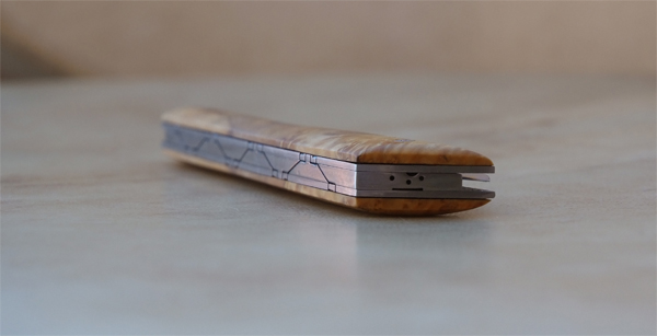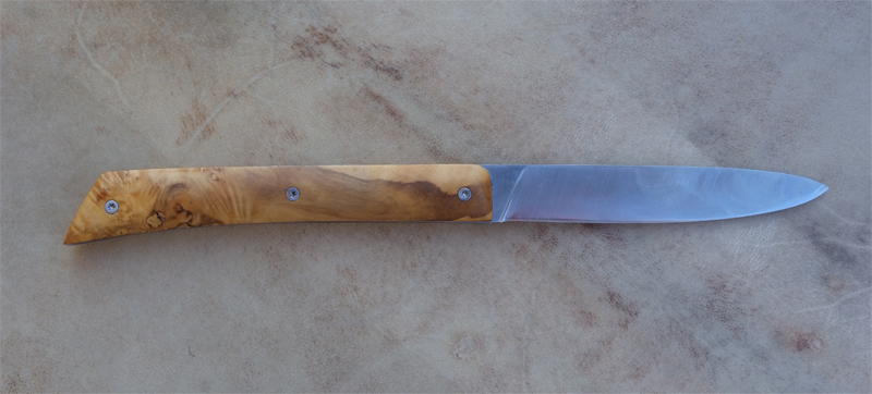 Lame D2 – manche Buis – ressort inox. – guillochages incas.