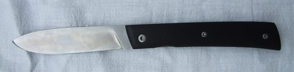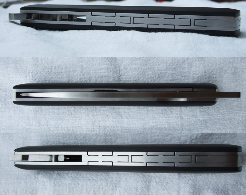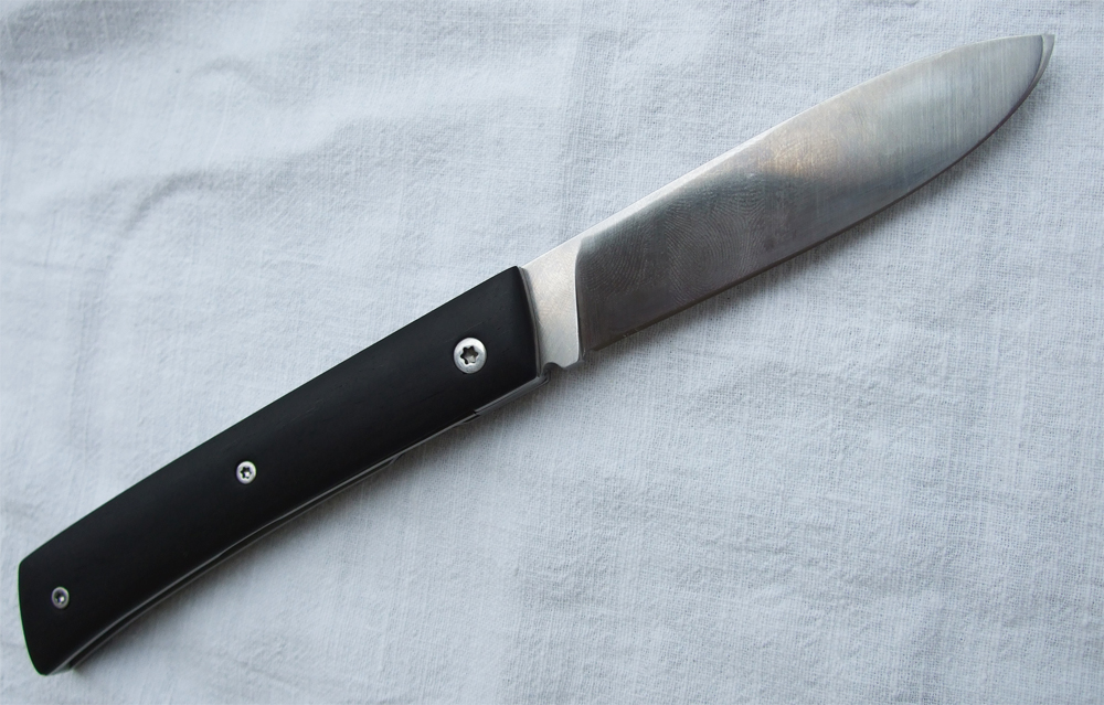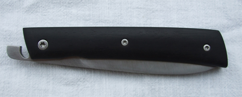 Lame RWL34 – liner inox ressort – manche ébène – guillochage inca echelle.