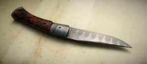 Tailleur 125SC & bois de fer Post author:cyrilka Post published:14 novembre 2018 Post category:Couteaux / Couteaux pliants / Tailleur Post comments:0 commentaire Couteau pliant pompe arrière. Lame 125SC trempe selective – plaquettes loupe de bois de fer – platines titane – mitres fines – guillochage – traitement noir anti-rayure DLC Longueur de lame : 87 mm. Longueur totale : 194 mm. Disponible – 750€ Tags: 125SC, anti-rayure, artisanal, carbone, chenailler, chenailler mascheix, corrèze, couteau, coutellerie, cyril kalisz, demontable, diamond like carbone, guillochage, kalisz, loupe de bois de fer, mascheix, mitres fines, noir, pompe arrière, tailleur Read more articles Article précédentGembloux 2018 Article suivantTailleur Super Gold & corne de buffle Vous devriez également aimer TanKaTo – 14c28n – Buis 26 novembre 2015 Doigt d’Argent – 100MnCrW4 (O1 – 1.2510) & Noyer 28 juin 2013 Treyssac -M- niolox et noyer stabilisé 7 mars 2015 Laisser un commentaire Annuler la réponseCommentEnter your name or username to comment Enter your email address to comment Enter your website URL (optional) Enregistrer mon nom, mon e-mail et mon site dans le navigateur pour mon prochain commentaire. Je m'inscrit à la liste d'informations Δ Ce site utilise Akismet pour réduire les indésirables. En savoir plus sur comment les données de vos commentaires sont utilisées.
