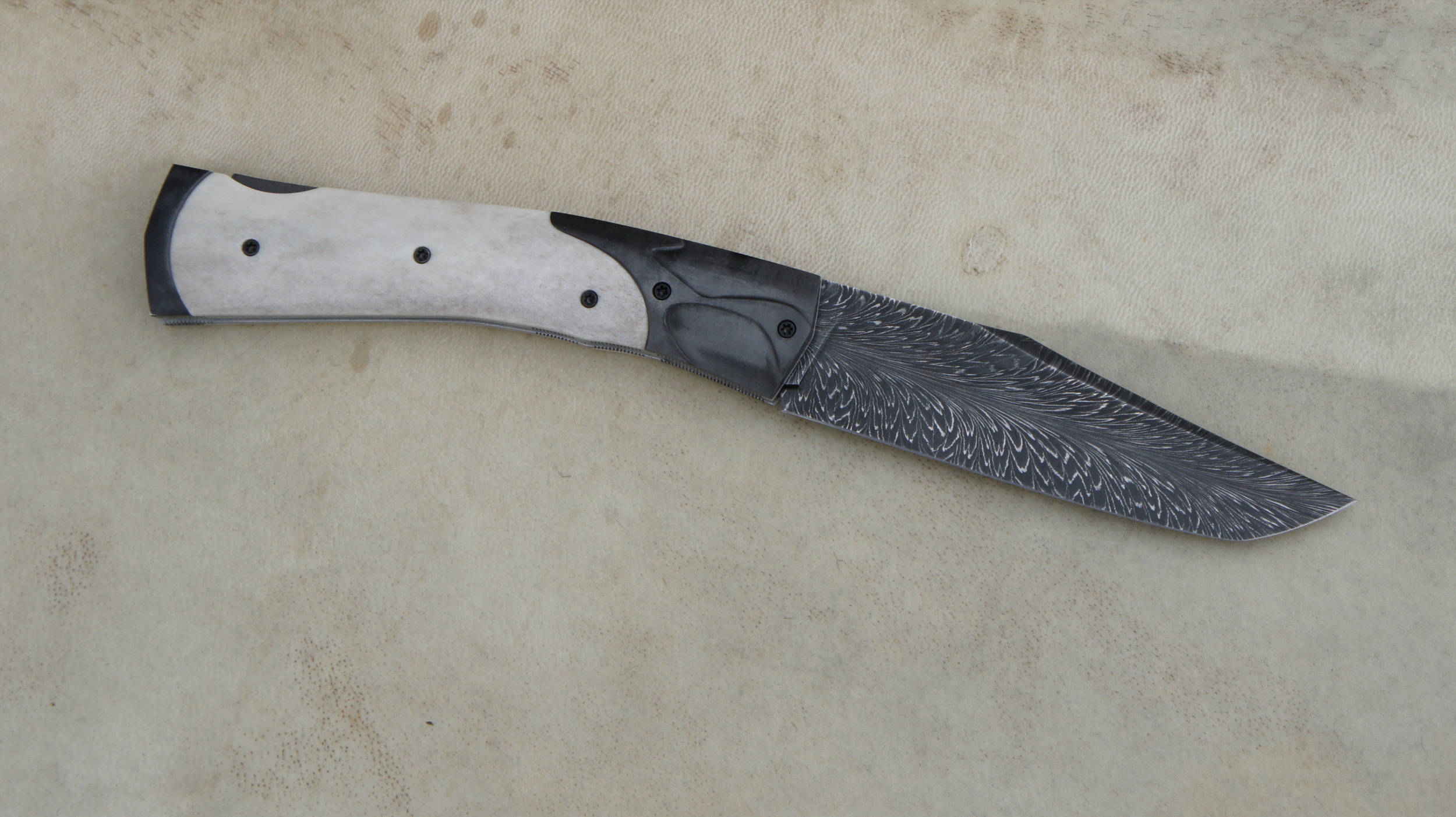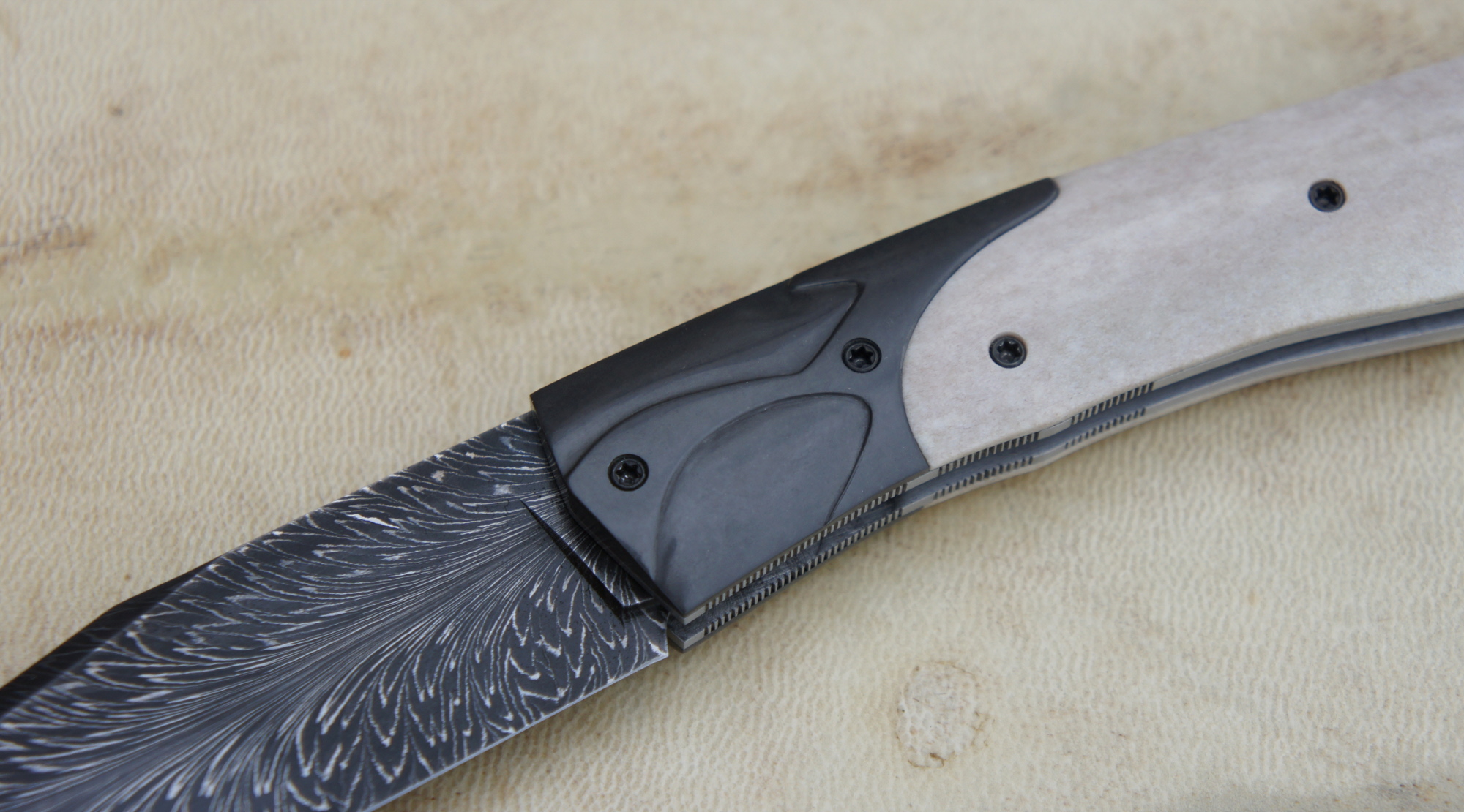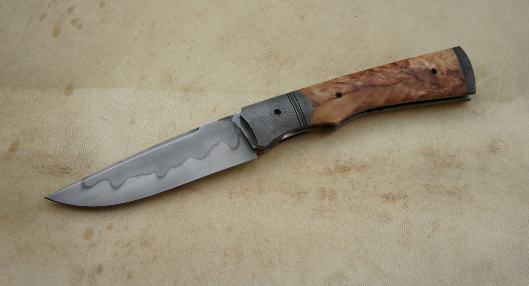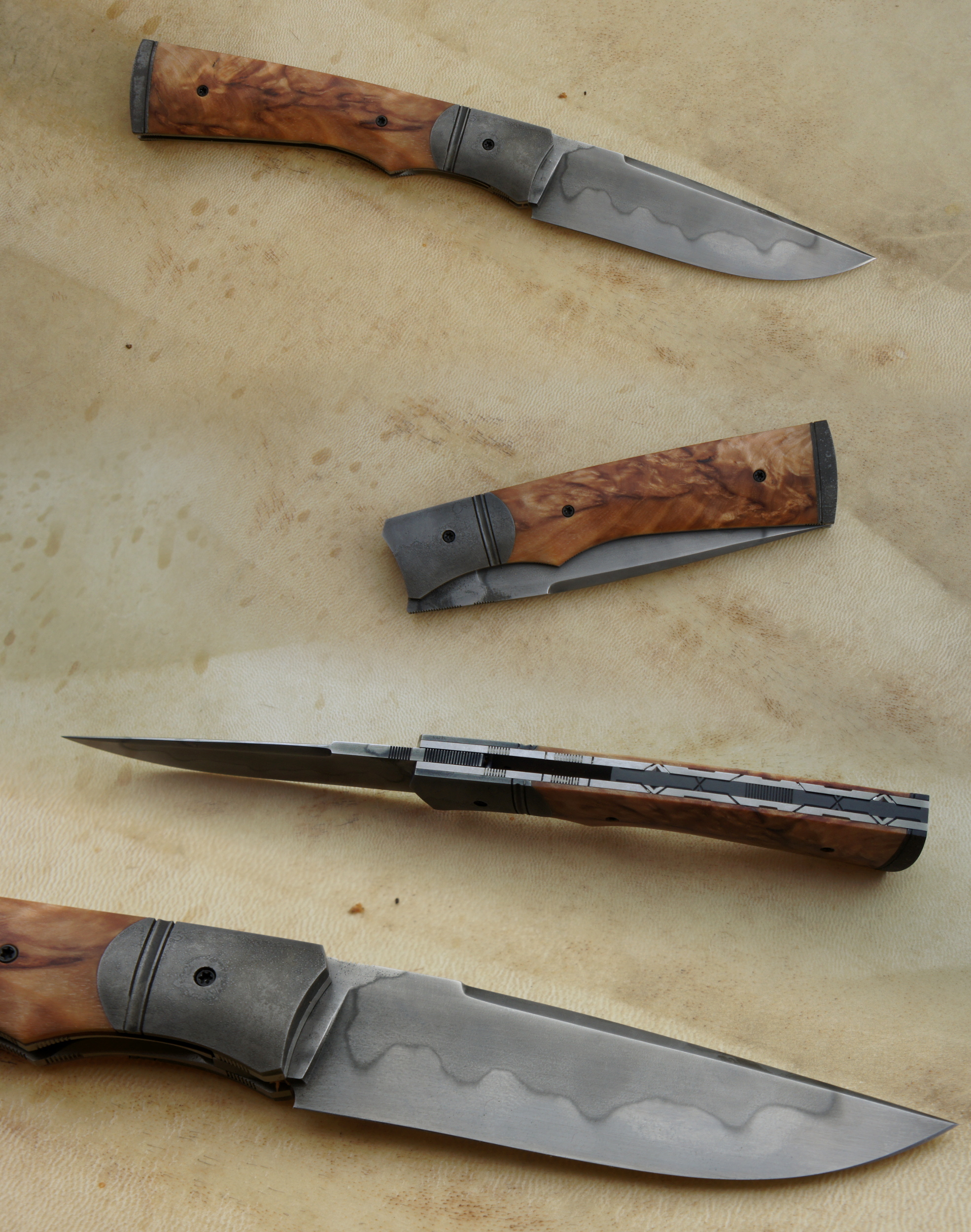 Icitte liner-lock – 125SC trempe sélective – loupe de bouleau stabilisée – mitres carbones trempées