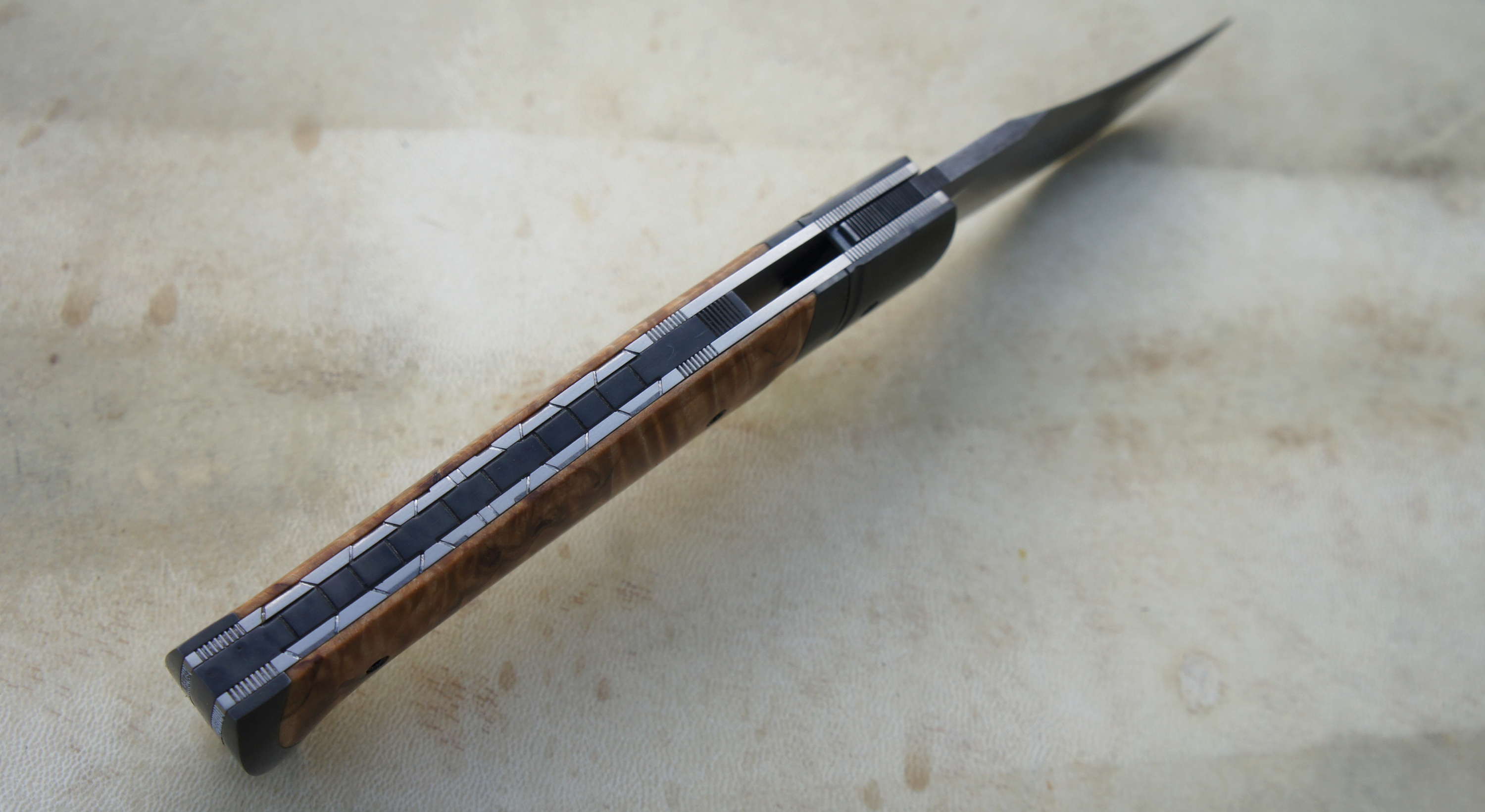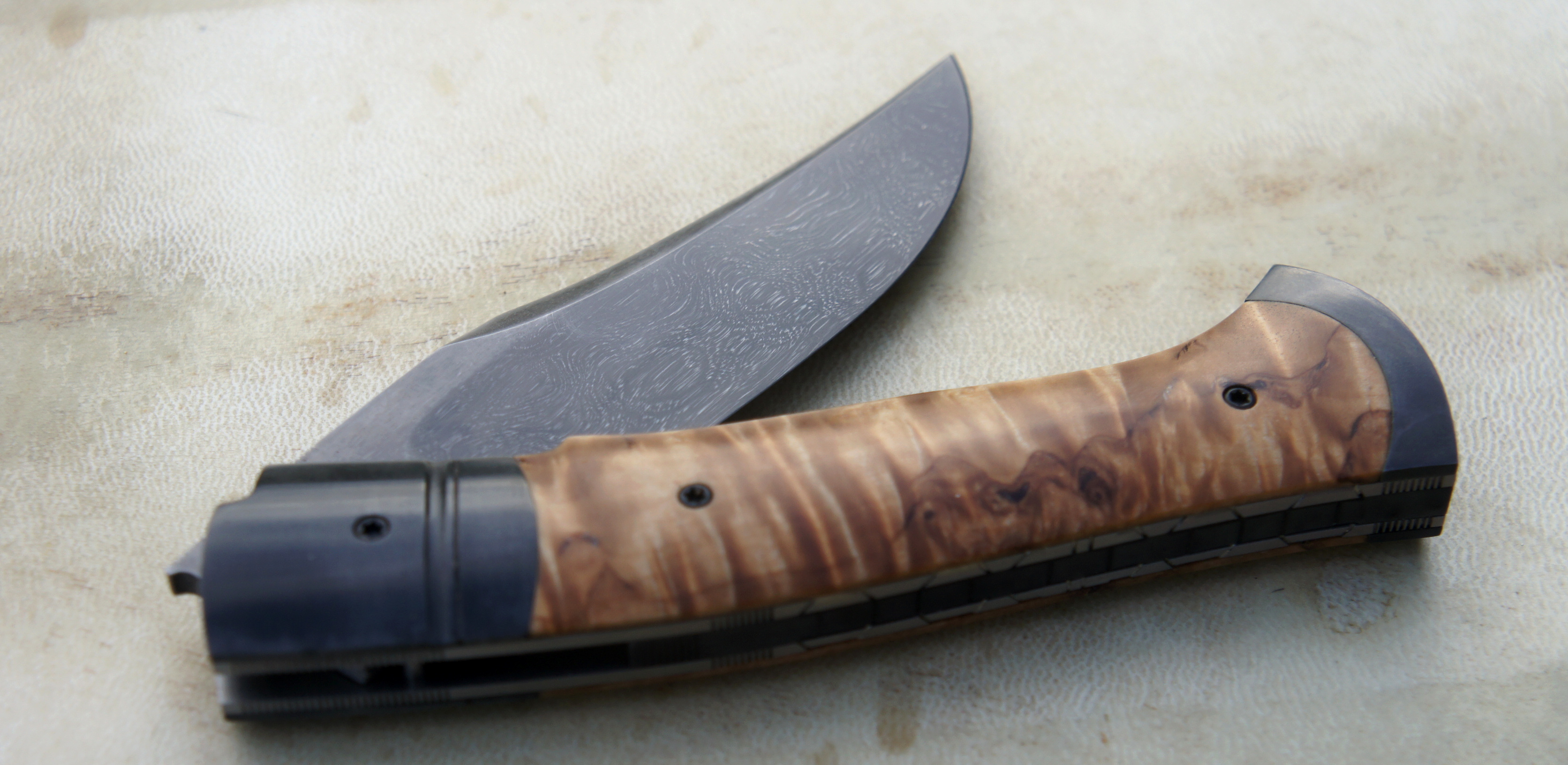 Alvilda wootz & bouleau Post author:cyrilka Post published:18 septembre 2021 Post category:Alvilda / Couteaux / Couteaux pliants Post comments:0 commentaire Couteau pliant liner-lock Lame carbone wootz d’Evrahim Baran – plaquettes bouleau stabilisé de NovaWood – platines titane – guillochage – mitres carbones trempées parkérisées.Longueur de lame : 88 mm.Longueur totale : 194 mm. Tags: alvilda, artisanal, bolsters, bouleau stabilisé, Chenailler-Mascheix, corrèze, couteau, couteau pliant, custom knife, evrahim bahran, folding knife, france, french, guillochage, liner-lock, mitres parkerisées, sandwich, wootz Read more articles Article précédentReka RWL34 & Olivier Article suivantNomade Suminagahsi Aura & bois de renne Vous devriez également aimer Tailleur sandwich damas & bois de renne 18 septembre 2021 Guardian 125Sc & loupe de noyer stabilisée 14 avril 2017 Reka – RWL34 – Ebène & Etuis 2 novembre 2013 Laisser un commentaire Annuler la réponseCommentEnter your name or username to comment Enter your email address to comment Enter your website URL (optional) Enregistrer mon nom, mon e-mail et mon site dans le navigateur pour mon prochain commentaire. Je m'inscrit à la liste d'informations Δ Ce site utilise Akismet pour réduire les indésirables. En savoir plus sur comment les données de vos commentaires sont utilisées.