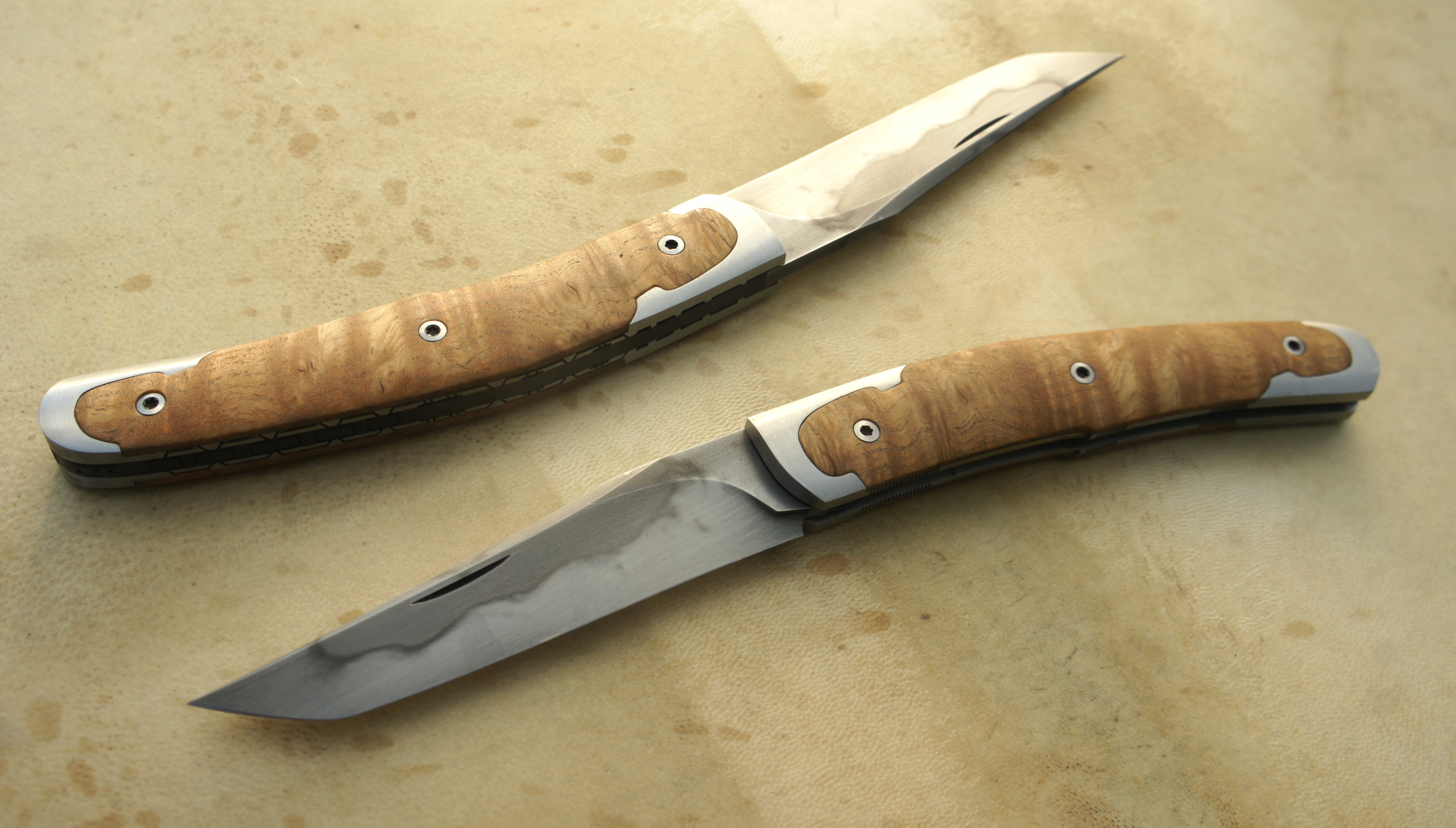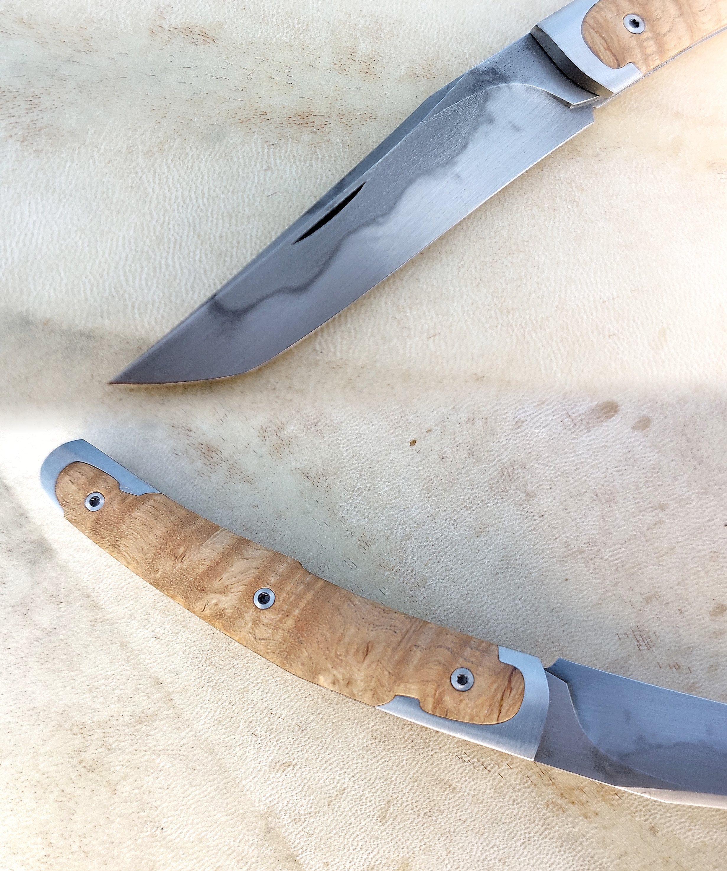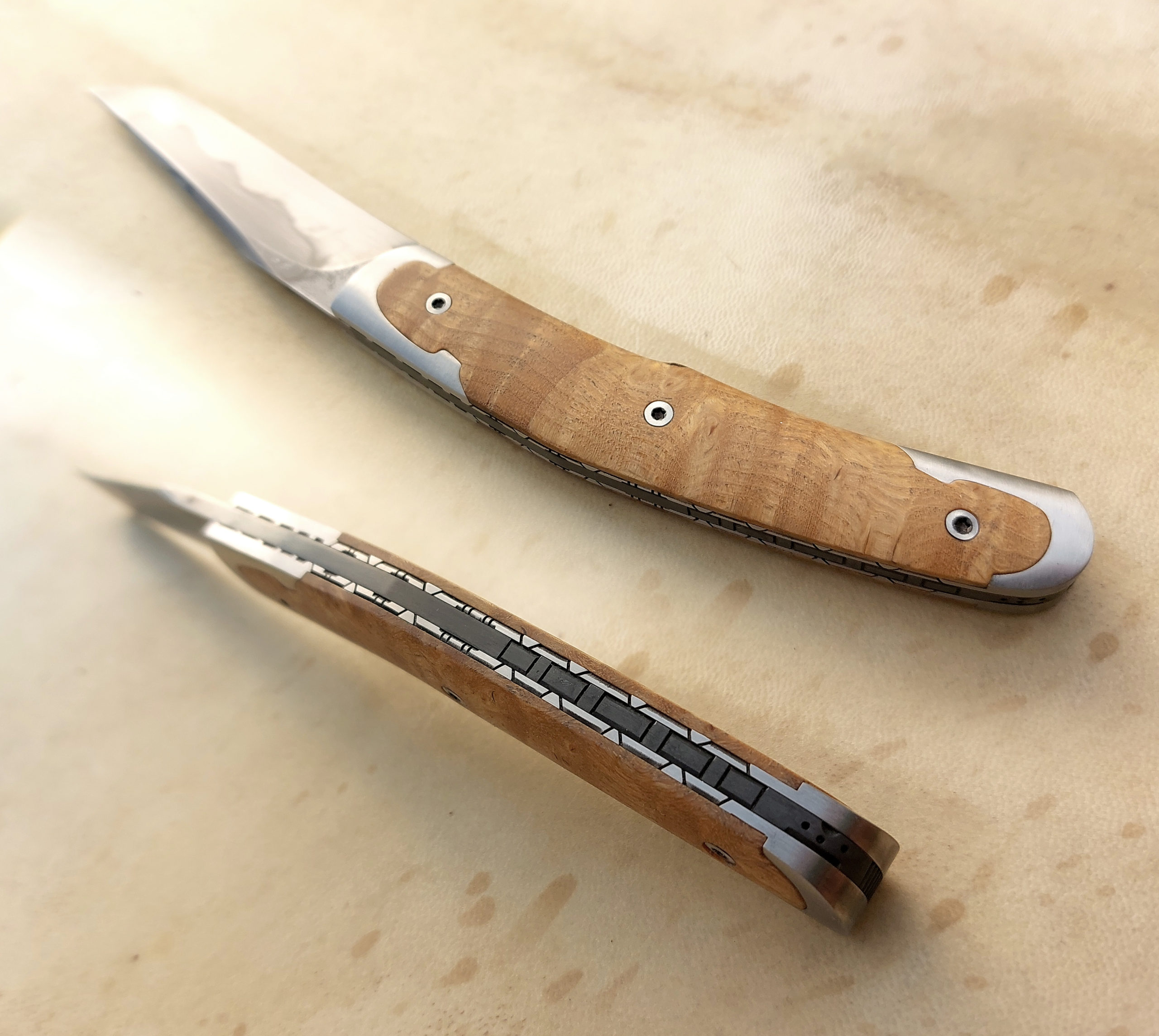 Celeste 125SC & châtaigner Post author:cyrilka Post published:18 février 2022 Post category:Celeste / Couteaux / Couteaux pliants Post comments:0 commentaire Celeste cran forcé. Lame acier carbone 125SC trempe séléctive – mitres intégrales inox trempées – châtaigner stabilisé – guillochage. lame : 85mm. Total : 190mm. Tags: artisanal, celeste, Chenailler-Mascheix, corrèze, couteau, couteau pliant, custom knife, folding knife, france, french, guillochage, handmade, liner-lock, RWL34, scratch proof Read more articles Article précédentNuevo – Wootz & loupe de marronier Article suivantTreyssac Fusion RWL34 & Hêtre stabilisé Vous devriez également aimer Treyssac XC100 et Noyer 23 mai 2016 Nuevo RWL34 & châtaigner ondé 19 février 2022 Reka Bois de Fer & RWL34 1 avril 2016 Laisser un commentaire Annuler la réponseCommentEnter your name or username to comment Enter your email address to comment Enter your website URL (optional) Enregistrer mon nom, mon e-mail et mon site dans le navigateur pour mon prochain commentaire. Je m'inscrit à la liste d'informations Δ Ce site utilise Akismet pour réduire les indésirables. En savoir plus sur comment les données de vos commentaires sont utilisées.